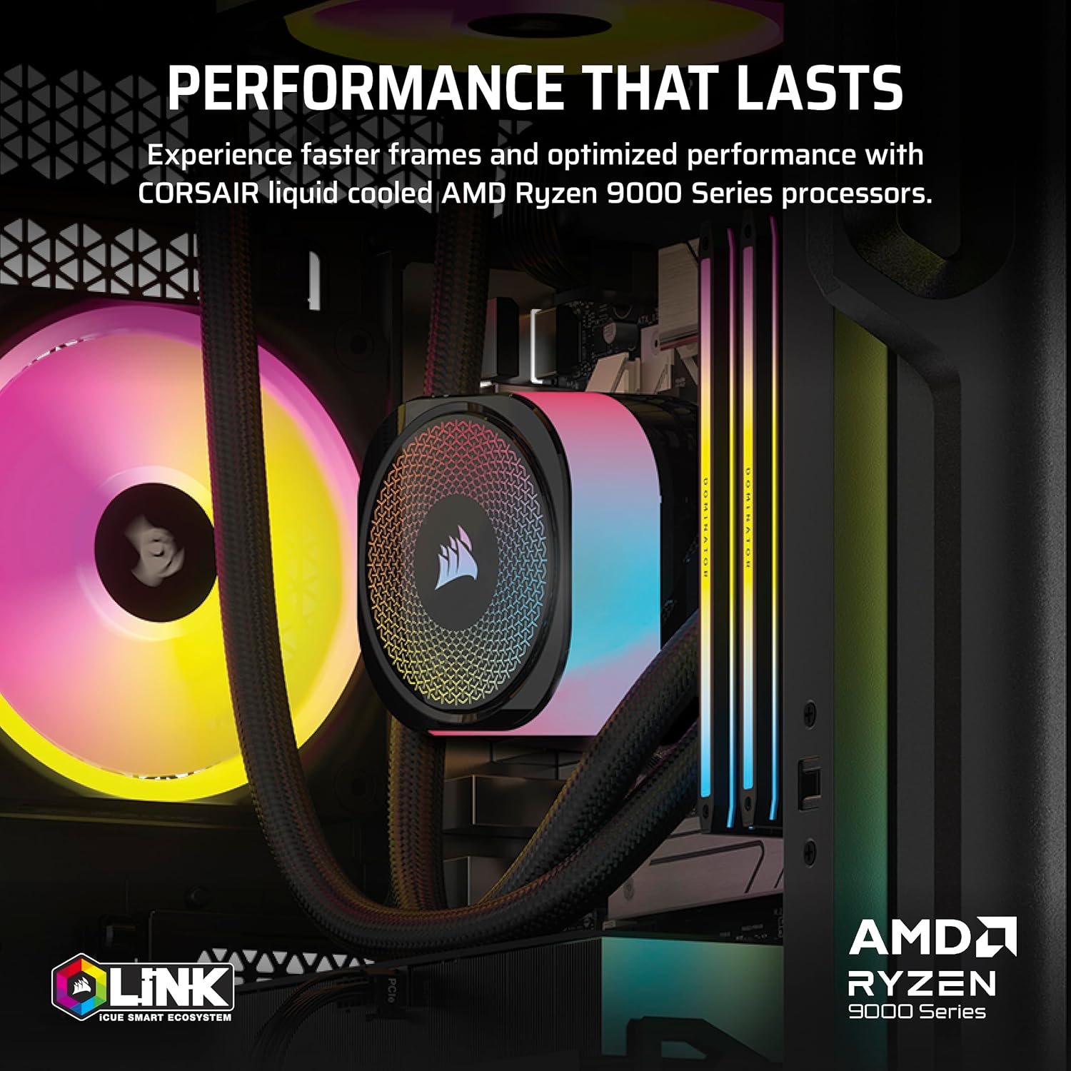 Liquid-Cooled AMD Ryzen 9000 Series CPU: powers smooth gameplay and high frame rates across a wide range of titles for avid gamers. With exceptional single-threaded and multi-threaded performance, professional content creators can now harness the full potential by enabling users to design, render, and iterate faster than ever before.