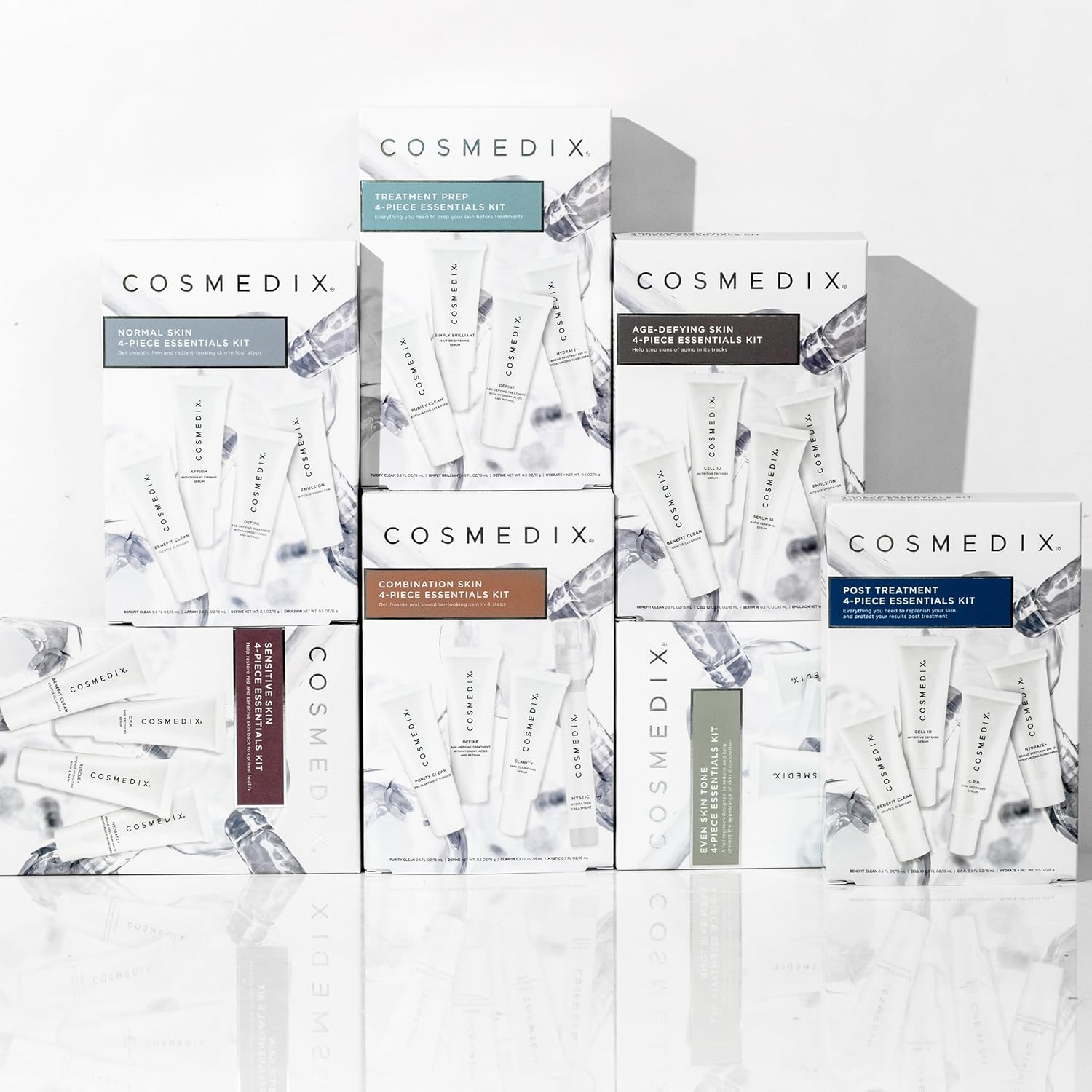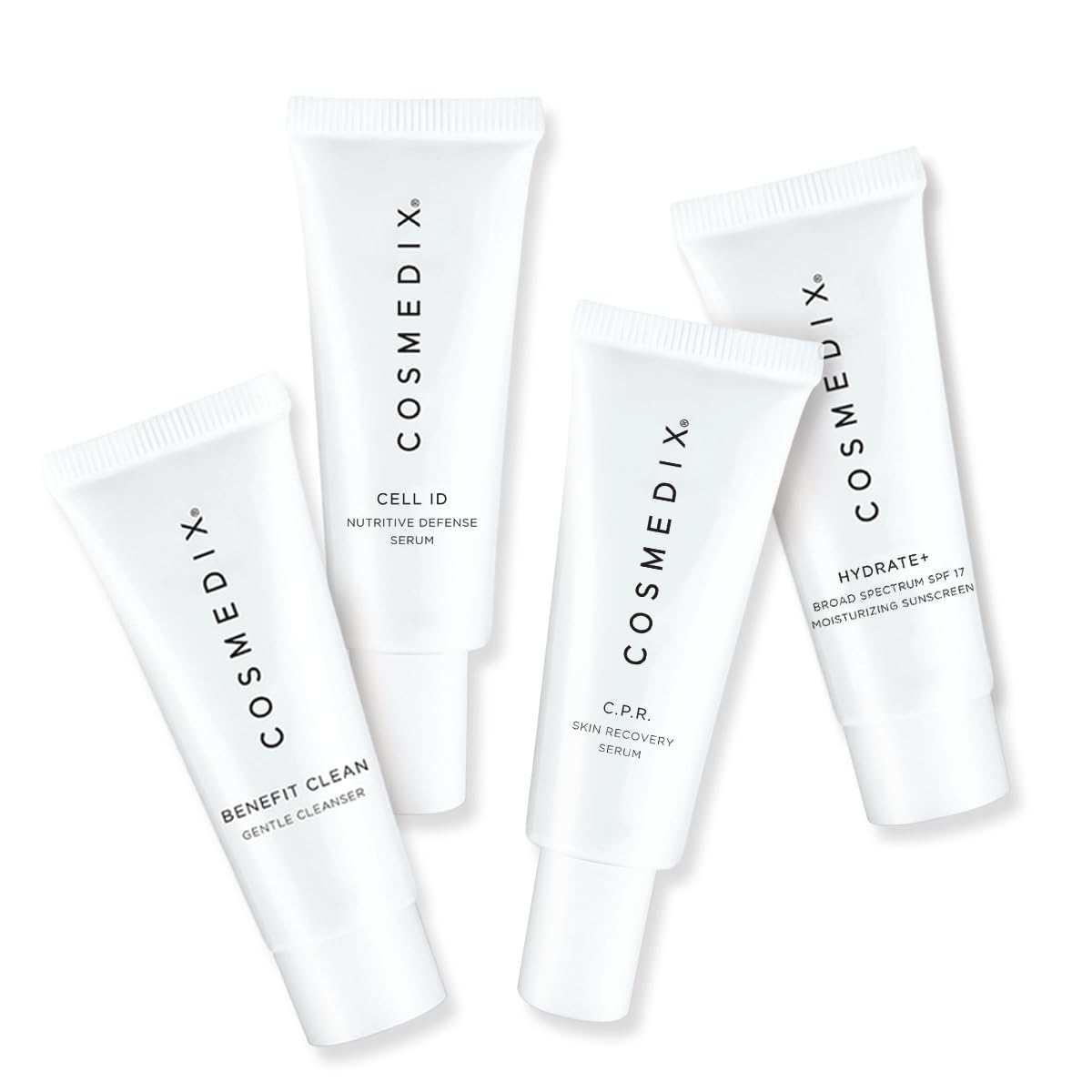 COSMEDIX Starter Kit | Four-Piece Travel Size Kit | Features Bestselling Skin Solutions | Includes Gentle Face Cleanser, Skin Treatment Serum, Exfoliator & Moisturizer, All Skin Types, Cruelty Free