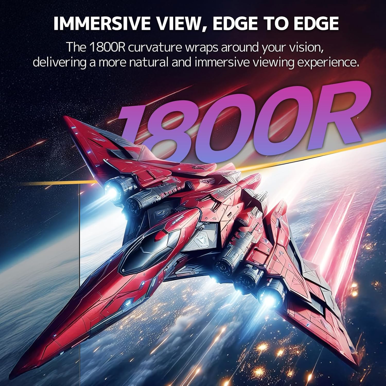 Step into the action with this 1800R curved gaming monitor. The wide curved screen surrounds your vision for immersive viewing, pulling you deeper into every battle and movie. With reduced distortion and eye comfort design, enjoy smooth visuals and long hours of gameplay without fatigue