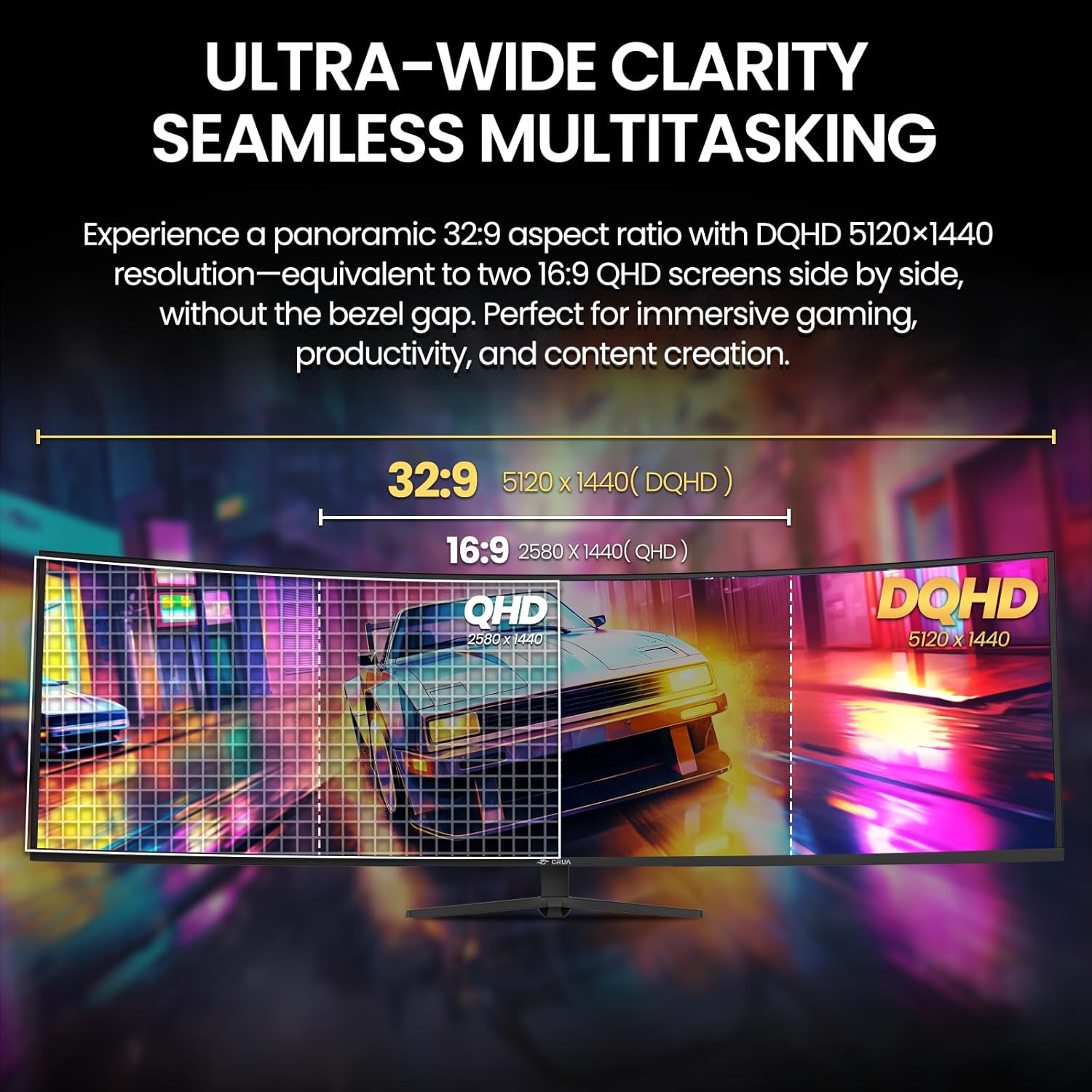 CRUA 49″ Curved Gaming Monitor | DQHD(5120 * 1440), 144Hz/165Hz, 1500R, 32:9, AMD FreeSync, 120% sRGB, Height Adjustable Ultra-Wide Screen Monitors, HDMI 2.1 & DP 1.4, Wall Mount Install- Black