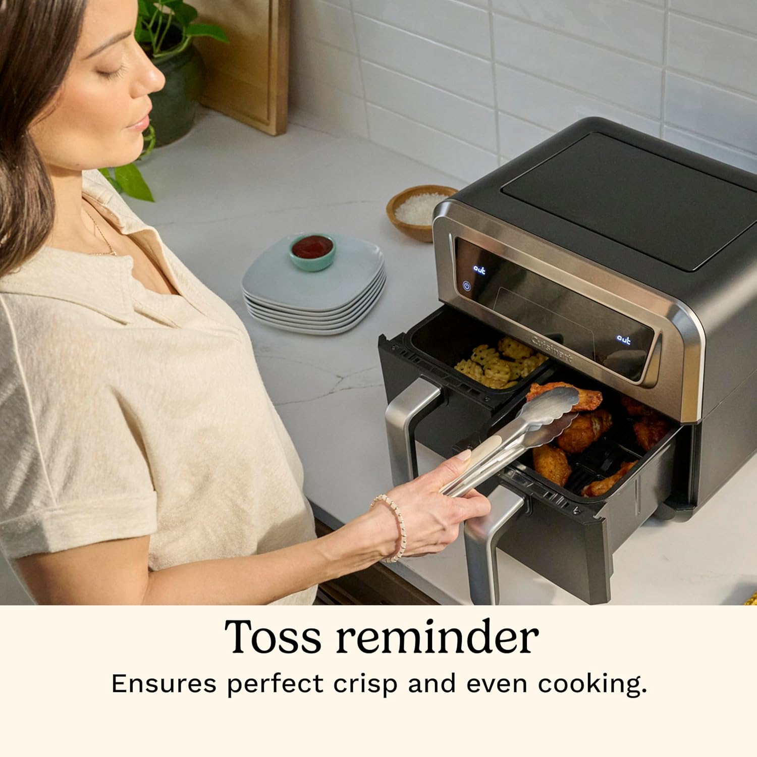 4 FUNCTIONS: This basket air fryer offers air fry, roast, bake and keep warm functions for everyday cooking, and boasts beloved Cuisinart features like toss reminder, auto-pause, and auto-warm.