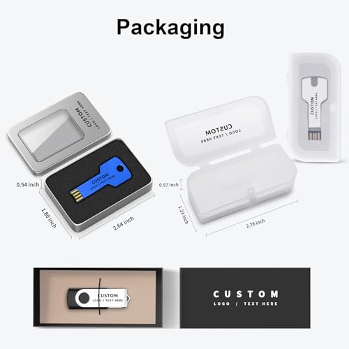 Custom Mini USB Flash Drives Personalized Thumb Drives with Logo for Business Gifts, Promotions, Events Plug and Play, High Speed USB Memory Stick in 16GB, 32GB, 64GB (100,128GB)