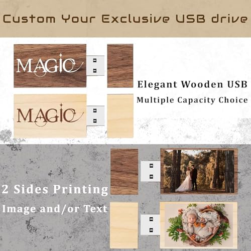 Custom USB Flash Drive, Personalized USB Thumb Drive Memory Stick, Portable Wood USB Pen Drive High Speed U Disk for External Data Storage (128GB,100PCS)