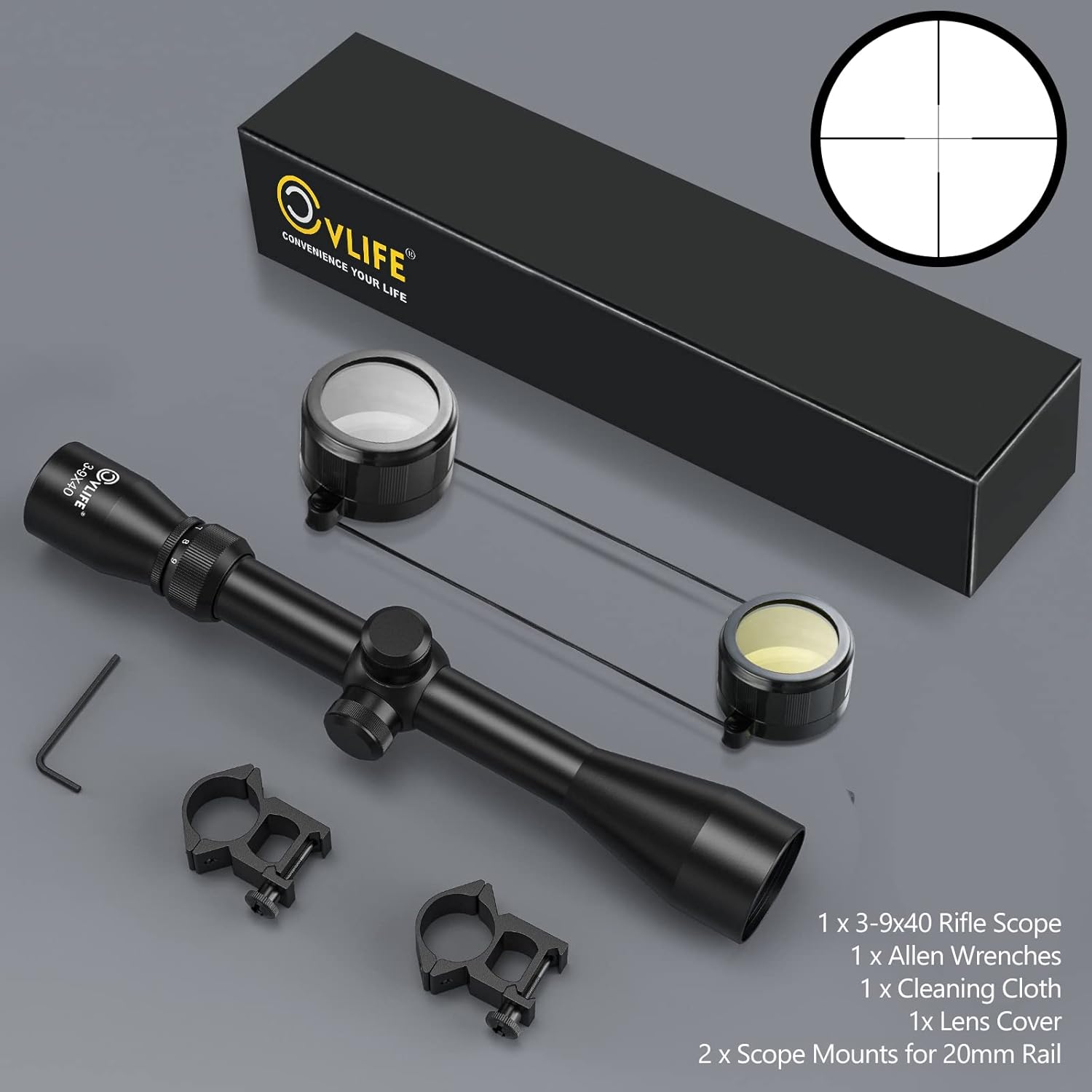 CVLIFE 3-9×40 Optics R4 Reticle Crosshair Scope with Scope Mounts