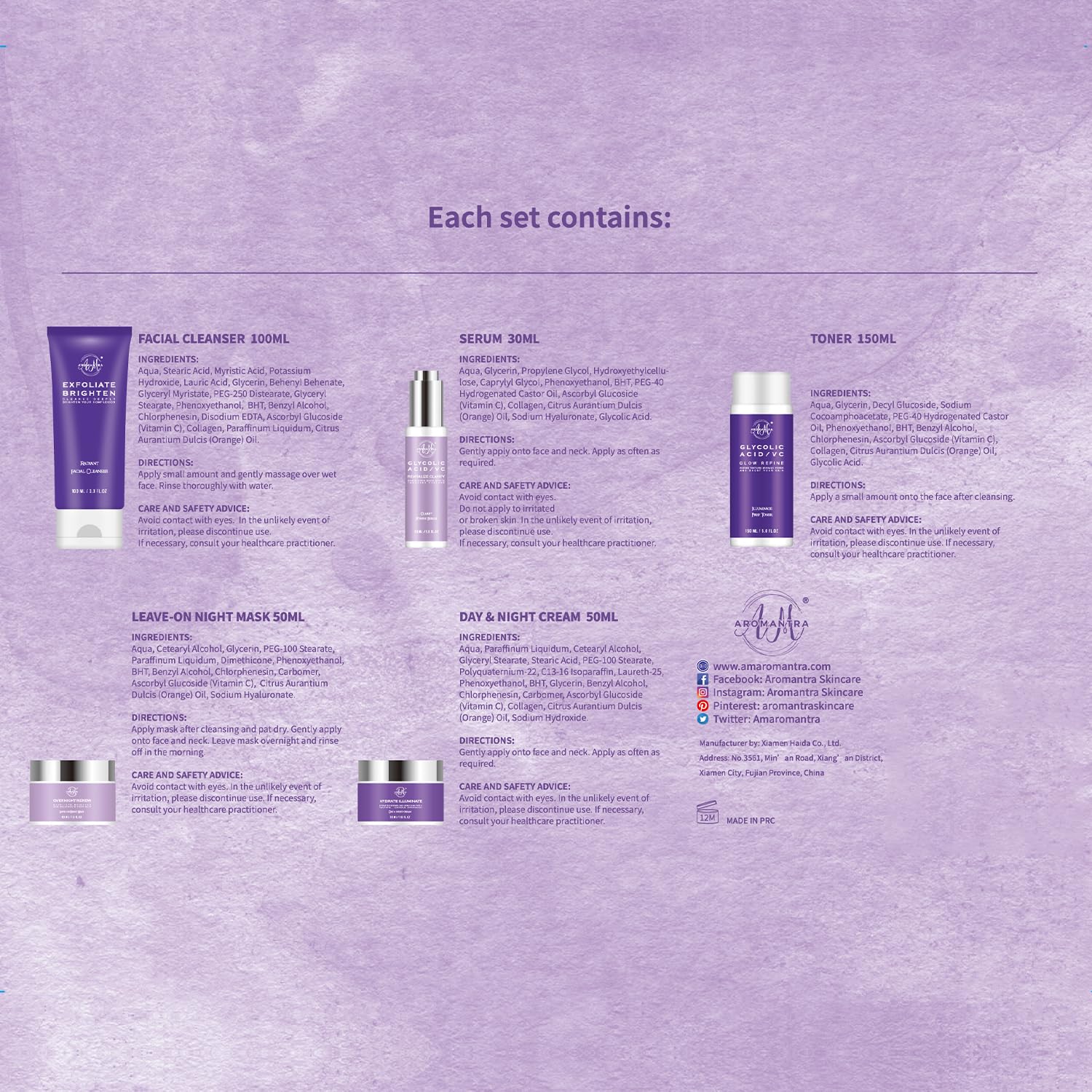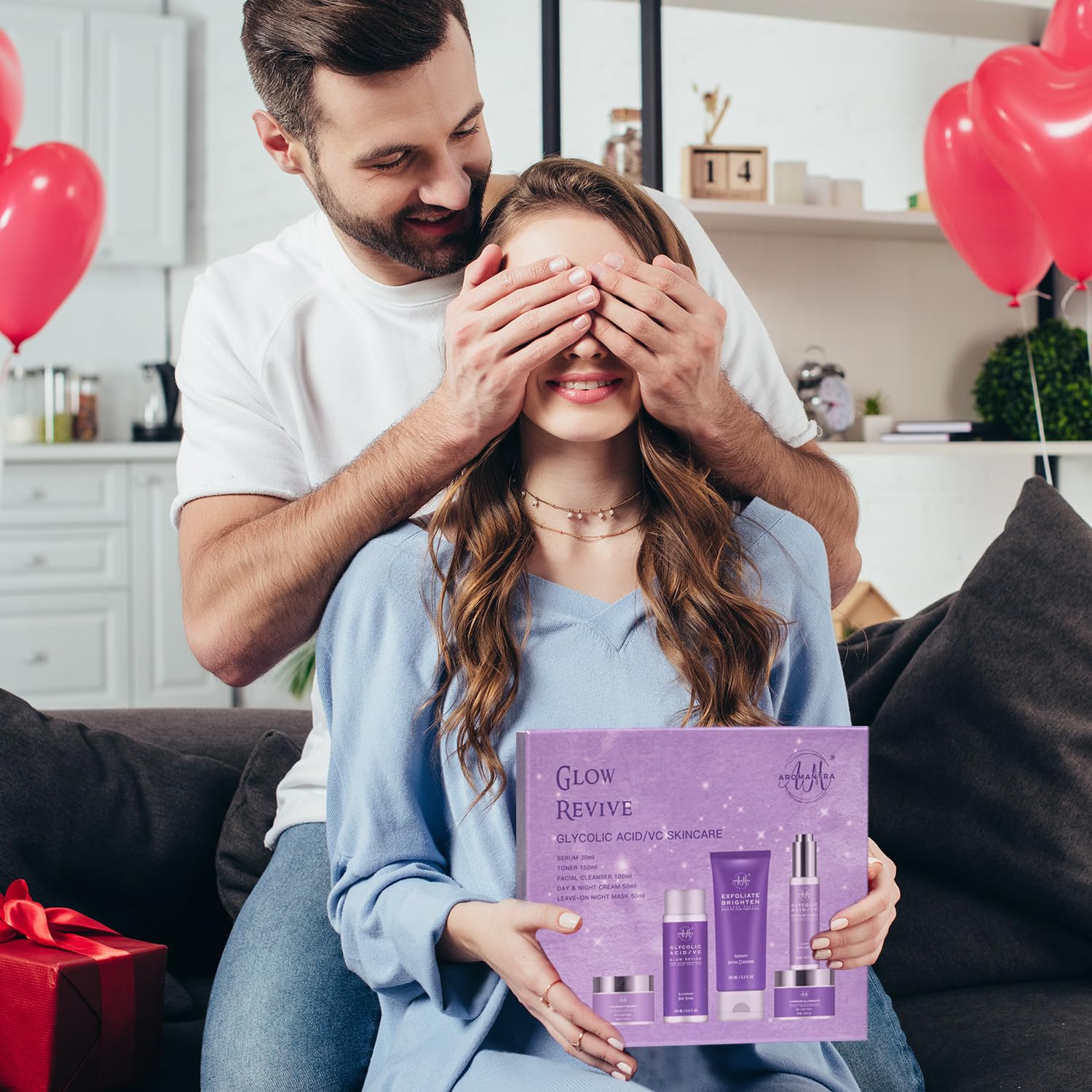 Daily Essential Skincare Set, Glycolic Acid+Vitamin C Facial Skin Care Sets & Kits, 5 In 1 Skin Care Gifts for Women w/Exfoliates Face Wash, Toner, Serum, Moisturizer, and Mask, Vegan & Cruelty-Free
