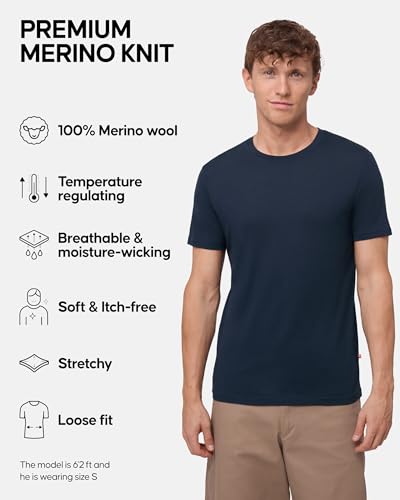DANISH ENDURANCE 100% Merino Wool Baselayer T-Shirt, Short Sleeve, Thermal, Winter, Mens Shirts, Dark Navy 2-pack, Medium