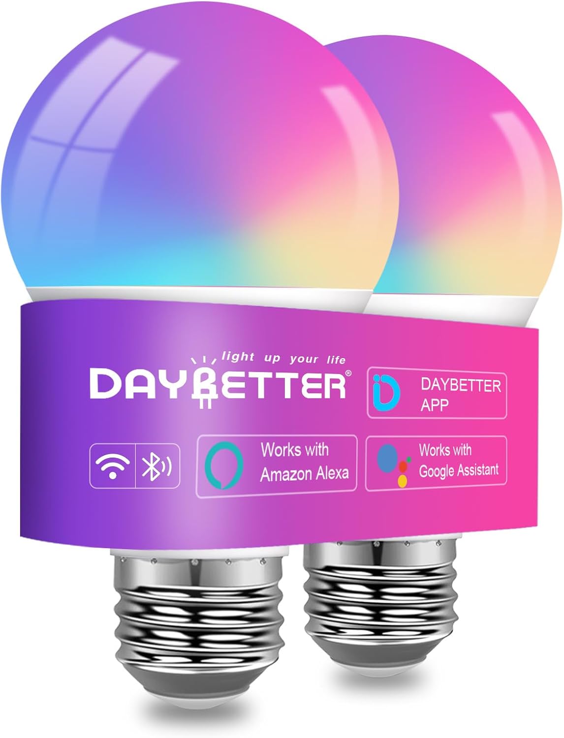 DAYBETTER Smart Light Bulbs, Smart Bulb Compatible with Alexa & Google Home, A19 E26 2.4G WiFi Bluetooth Alexa Light Bulbs, RGBCW Color Changing LED Light Bulb, 60W Equivalent, 800LM, 2Pack