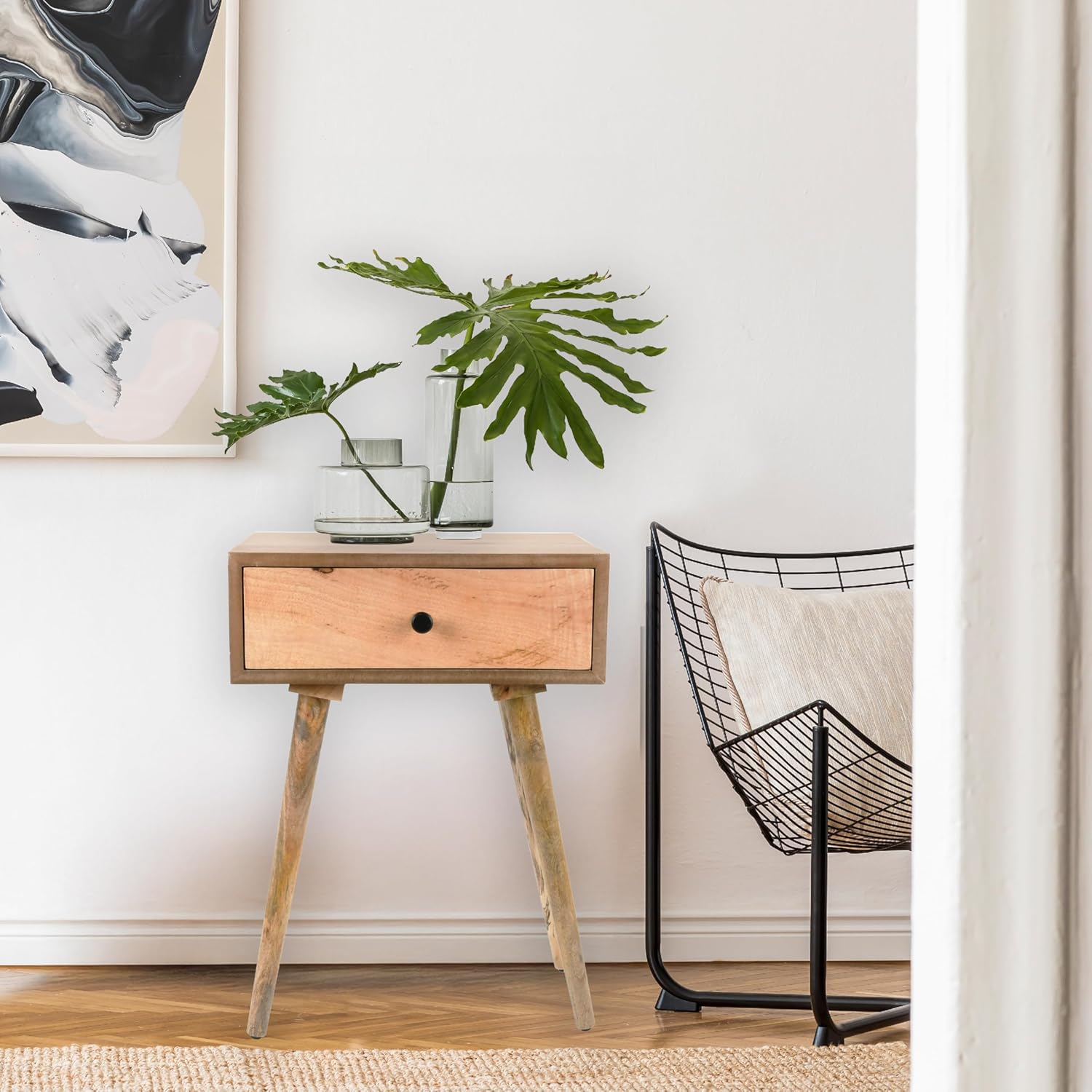 Functional Storage with Easy Access: Keep clutter at bay with the convenient single drawer, perfect for storing small essentials. The black hardware adds a touch of modern flair