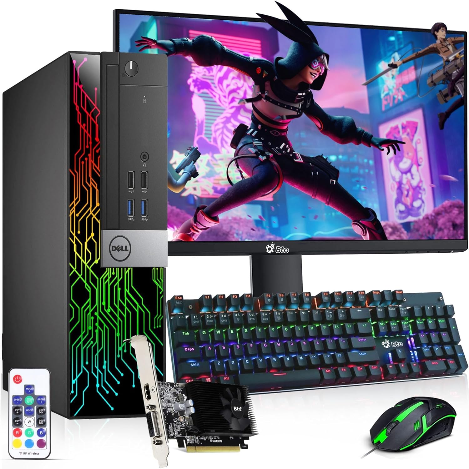 Dell RGB Gaming Desktop Computer PC — Intel Core i5-6th Gen, 16GB RAM, 256GB SSD, 1TB HDD – 22-Inch Monitor, GT 1030, Windows 11 Pro (Renewed)