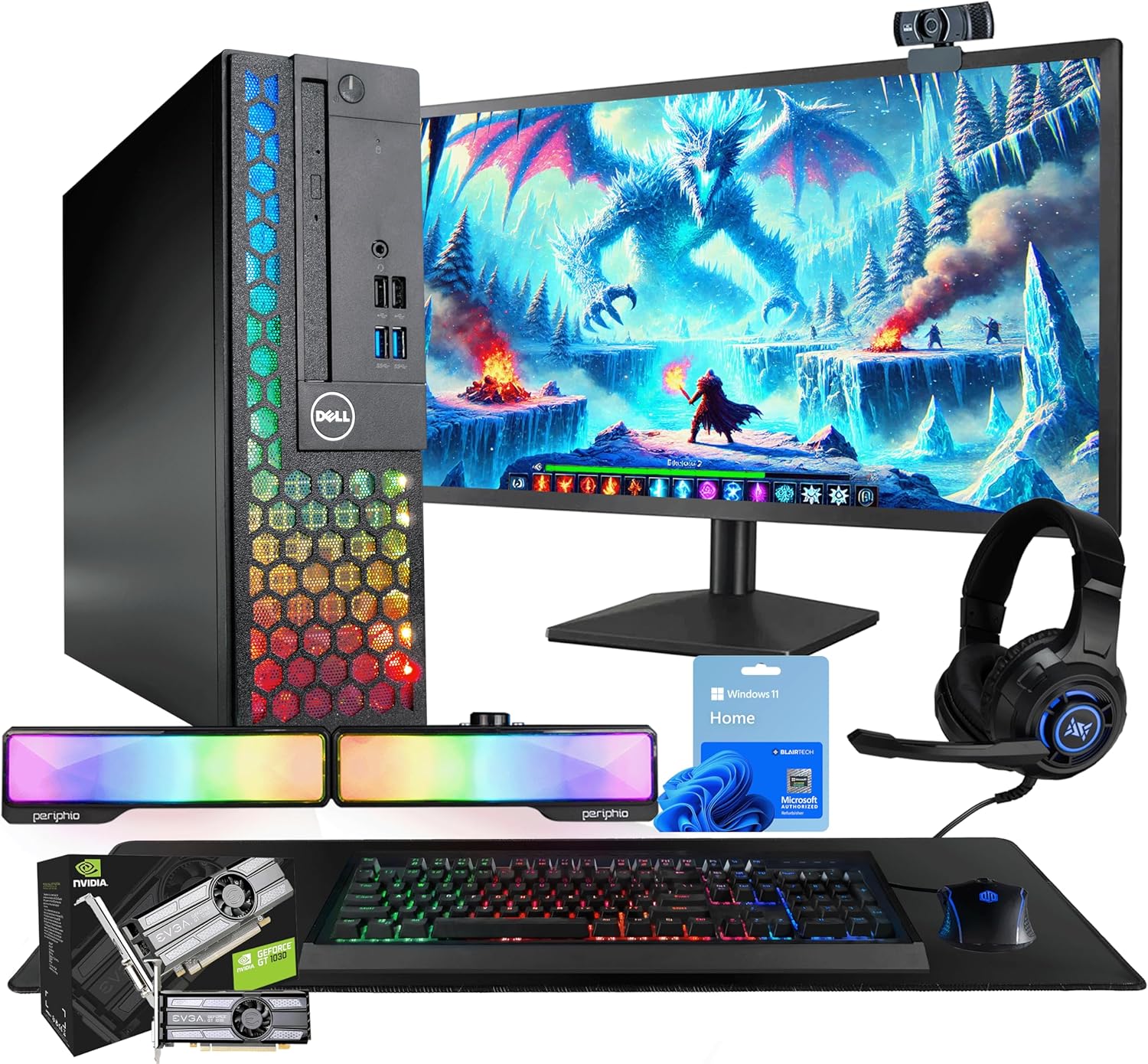 Dell RGB Light Gaming PC Bundle (Renewed) | Intel Core i5 | 16GB RAM | 500GB SSD | NVIDIA GT 1030 2GB | Windows 11 Pro | 24” FHD Monitor | RGB Soundbar, Keyboard, Mouse & Headphones | (Renewed)