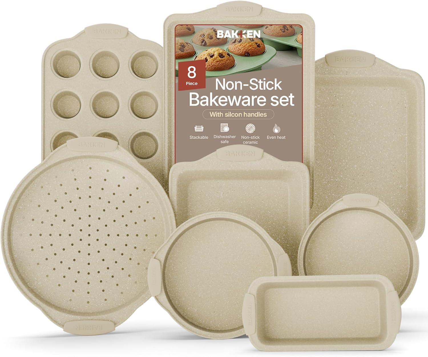 VERSATILE BAKING SET: Includes 8 essential pieces for baking enthusiasts, from a baking pan to a muffin pan, offering versatility for various recipes and baking needs.