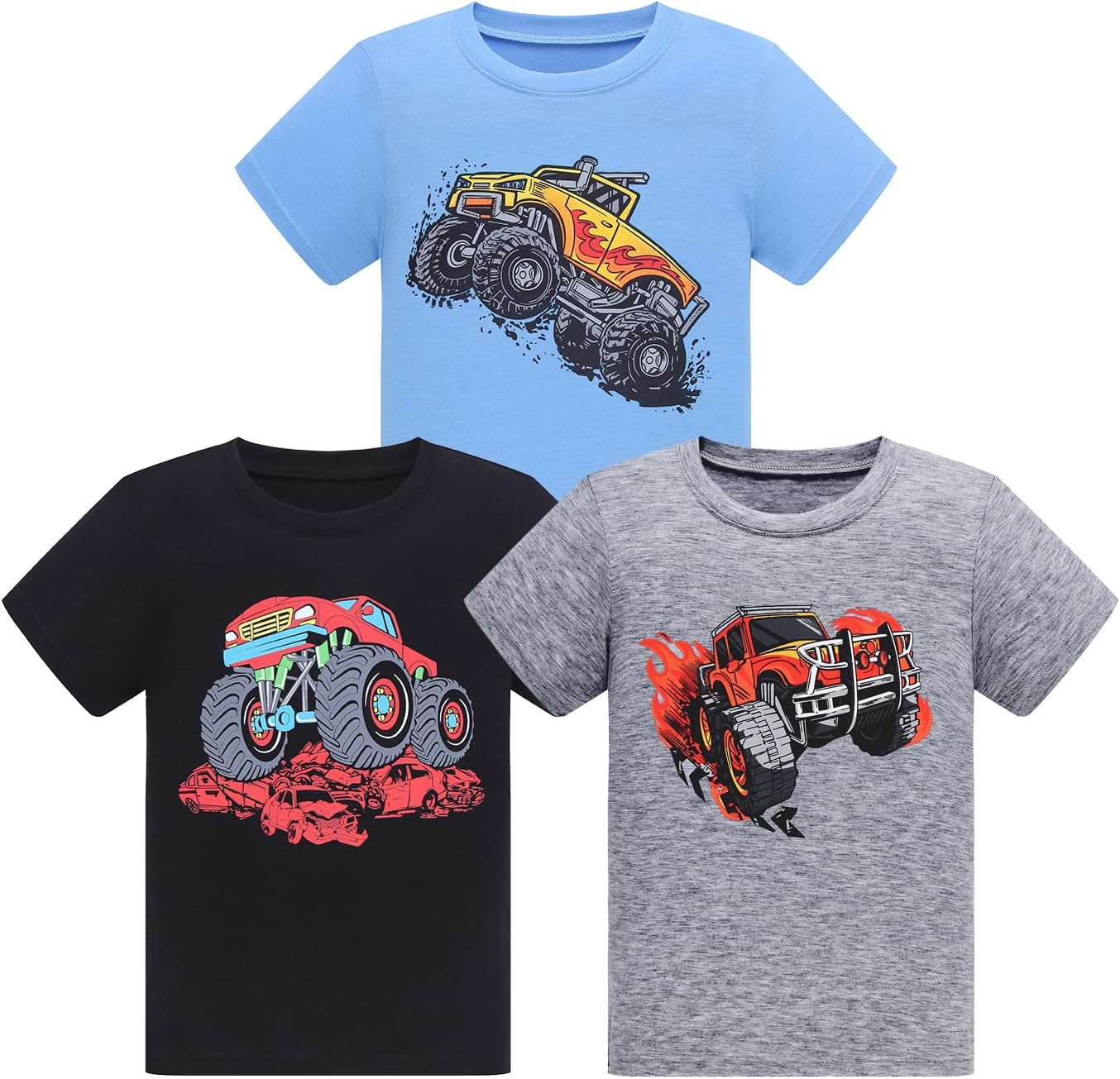 Demifill Toddler Boys 3 Pack Short Sleeve Boys Short T-Shirts Crew Neck T-Shirt Size 2-10Years