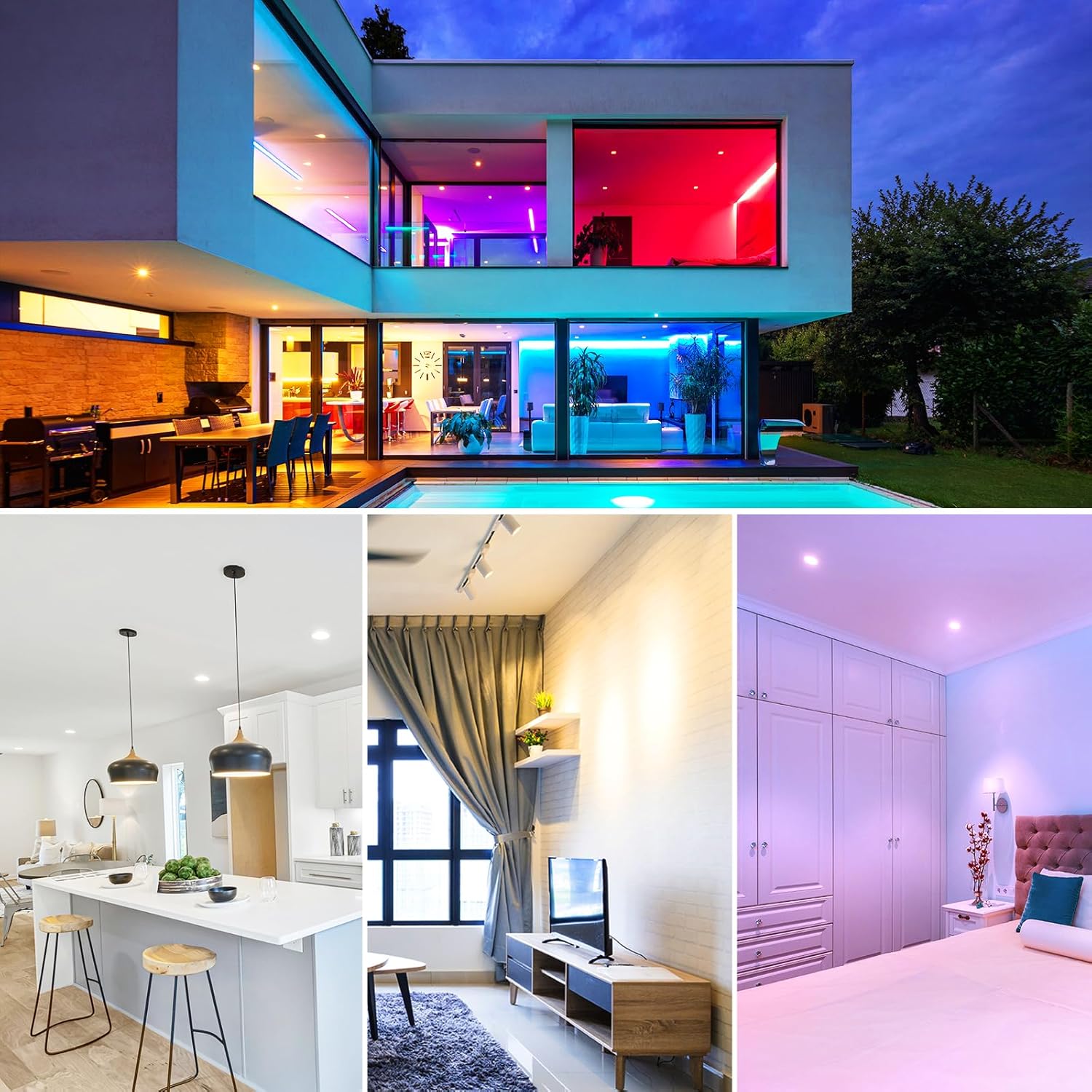 Multi-Color Changing & Scene Mode: With a wide range of 16 Million Colors Options and Tunable White from warm white to cool white, you can customize the desired color temperature to match different scene moods or activities, add ambiance to the room, and can also go super bright white when necessary. There are various pre-setup scene modes for your choice via one-tap quickly.