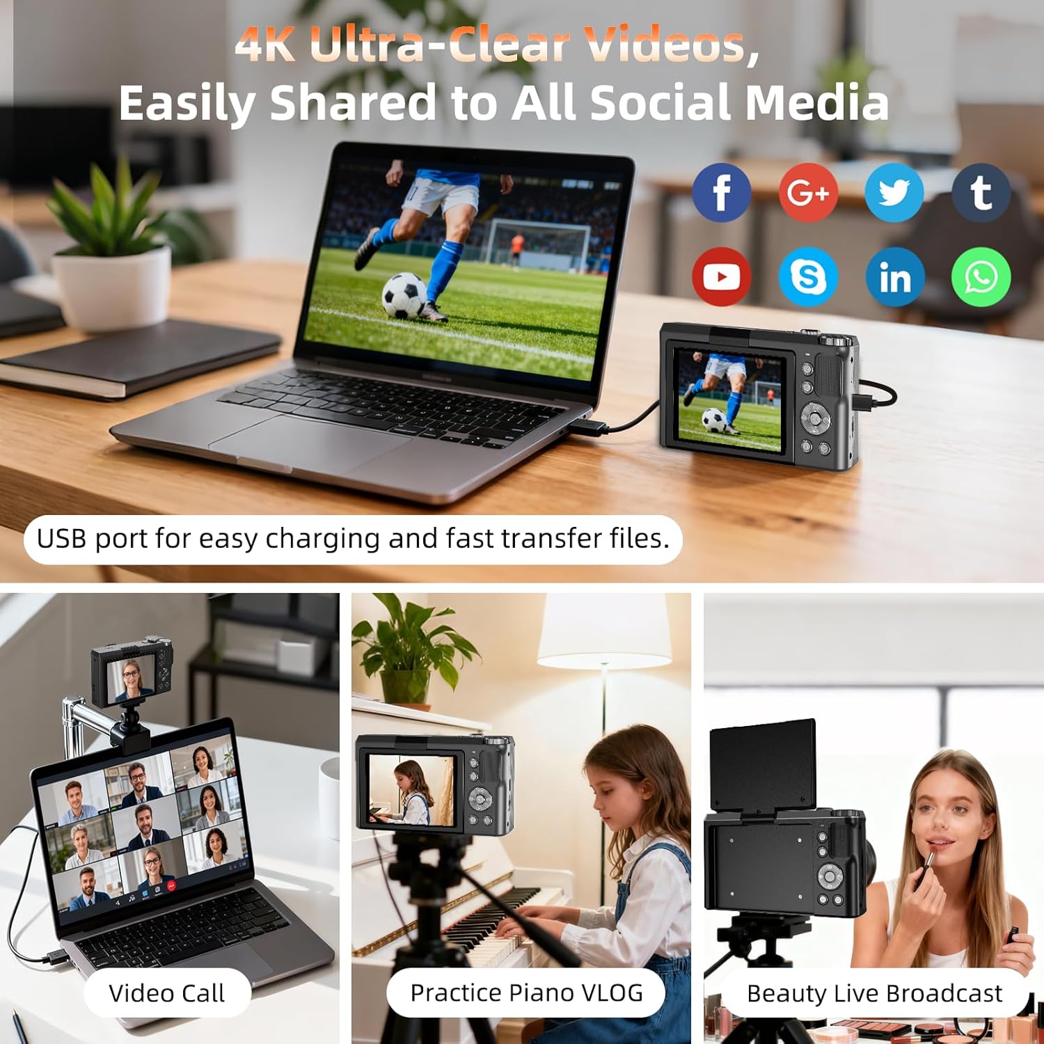 Easy USB Transfer, Long Battery Life & Beginner-Friendly Design: Quickly transfer your photos and videos using USB connectivity. This beginner photography camera supports long shooting sessions, so you never miss a moment. It’s a complete content creator camera for travel, YouTube, family, and social media, combining ease of use with professional results.