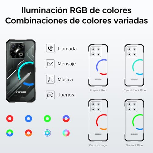 𝟕-𝐂𝐨𝐥𝐨𝐫 𝐑𝐆𝐁 𝐋𝐢𝐠𝐡𝐭𝐢𝐧𝐠 𝐄𝐟𝐟𝐞𝐜𝐭𝐬 – 𝐈𝐧𝐭𝐞𝐥𝐥𝐢𝐠𝐞𝐧𝐭 𝐃𝐲𝐧𝐚𝐦𝐢𝐜 𝐋𝐄𝐃 𝐍𝐨𝐭𝐢𝐟𝐢𝐜𝐚𝐭𝐢𝐨𝐧𝐬-DOOGEE Blade GT Play rugged smartphone features 8 customizable RGB lighting modes and 3 flashing styles that sync with your music and notifications. Whether you\’re taking a call, receiving a message, or playing your favorite tracks, the dynamic lighting creates a vibrant, high-tech feel. Perfect for low-light settings, this rugged phone adds a personalized touch that makes your phone stand out.