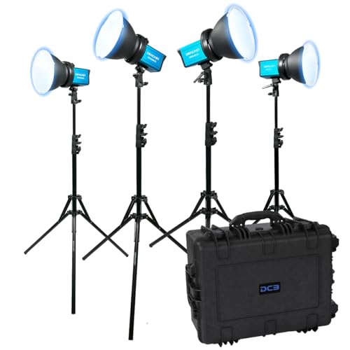 【4 Light Kit Including Accessories】The Dracast DRXM80DX3H LED Video Light Kit includes x4 Dracast X Series M80 Daylight LED video lights, each with reflector dish, diffusion panel, mounting hardware, and AC power adapter. The lighting kit also includes x4 light stands, x4 v-mount battery plate accessories, x4 carry cases, x4 handle grip accessories and an injection molded hard plastic travel case with telescoping handle and wheels.