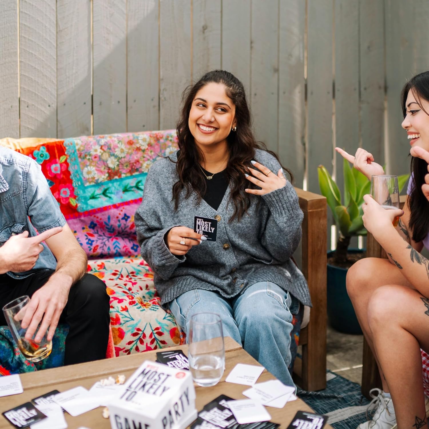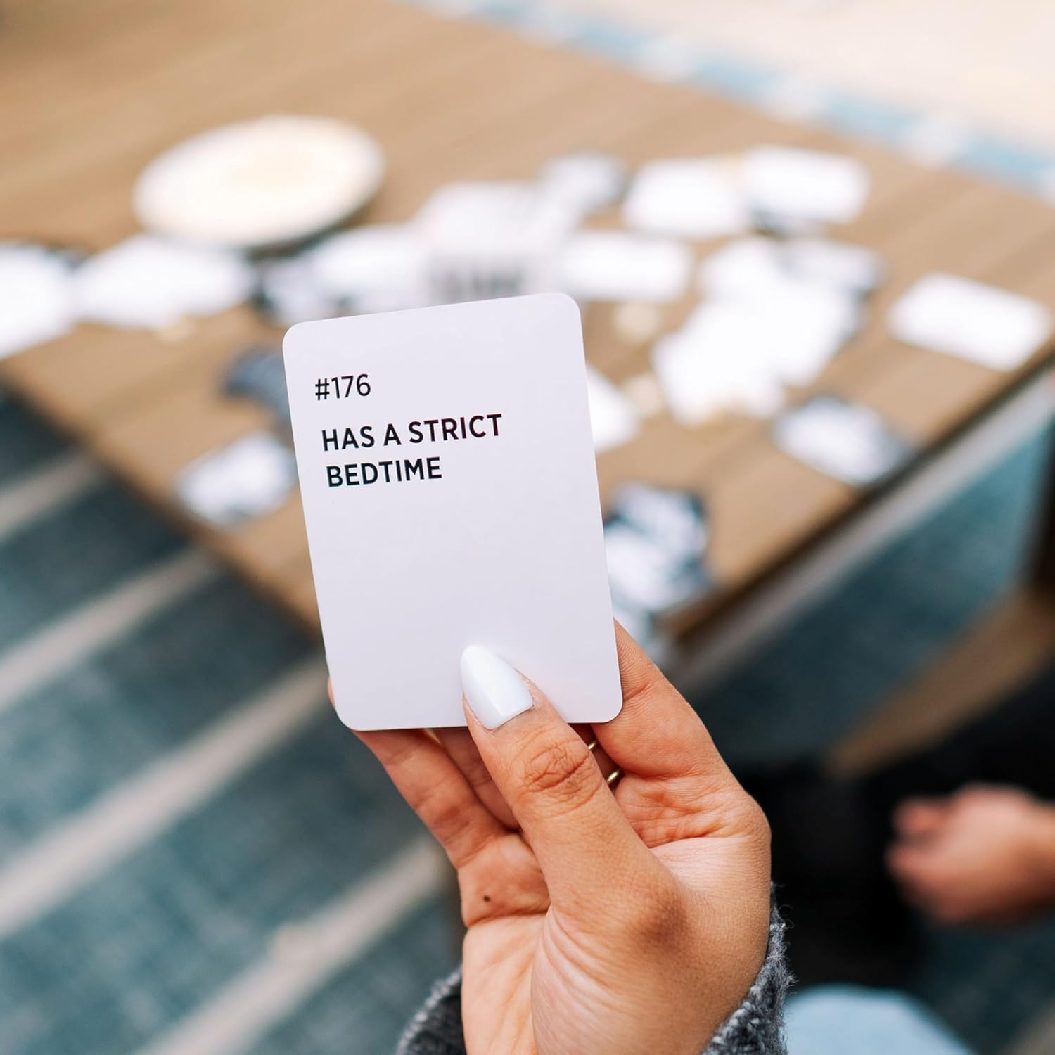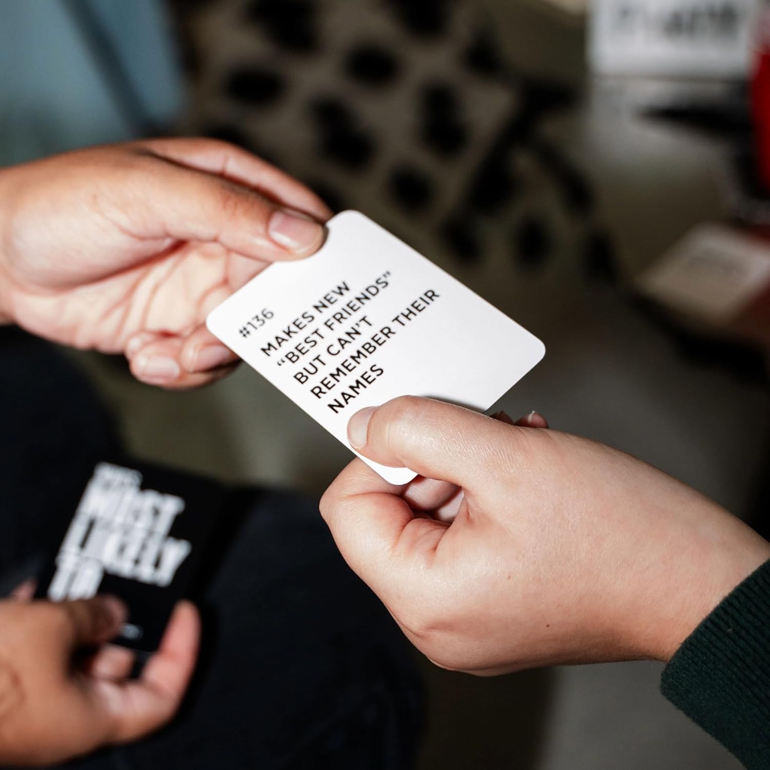 Funny, Relatable Prompt Cards: Decide who in the group is most likely to forget their own birthday, eat dessert before dinner, or secretly want to be TikTok famous.