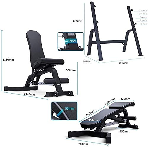 Dumbbell Bench Workout Bench Folding Weight Bench Multifunction Weight Bench Barbell Bench Squat Rack Home Dumbbell Bench Fitness Chair Fitness Equipment Dumbbell Bench, 147 * 74 * 50cm, Red