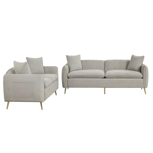 DUYHBAWRS 2 Piece Velvet Upholstered Sofa Sets,Loveseat and 3 Seat Couch Set Furniture Golden Metal Legs