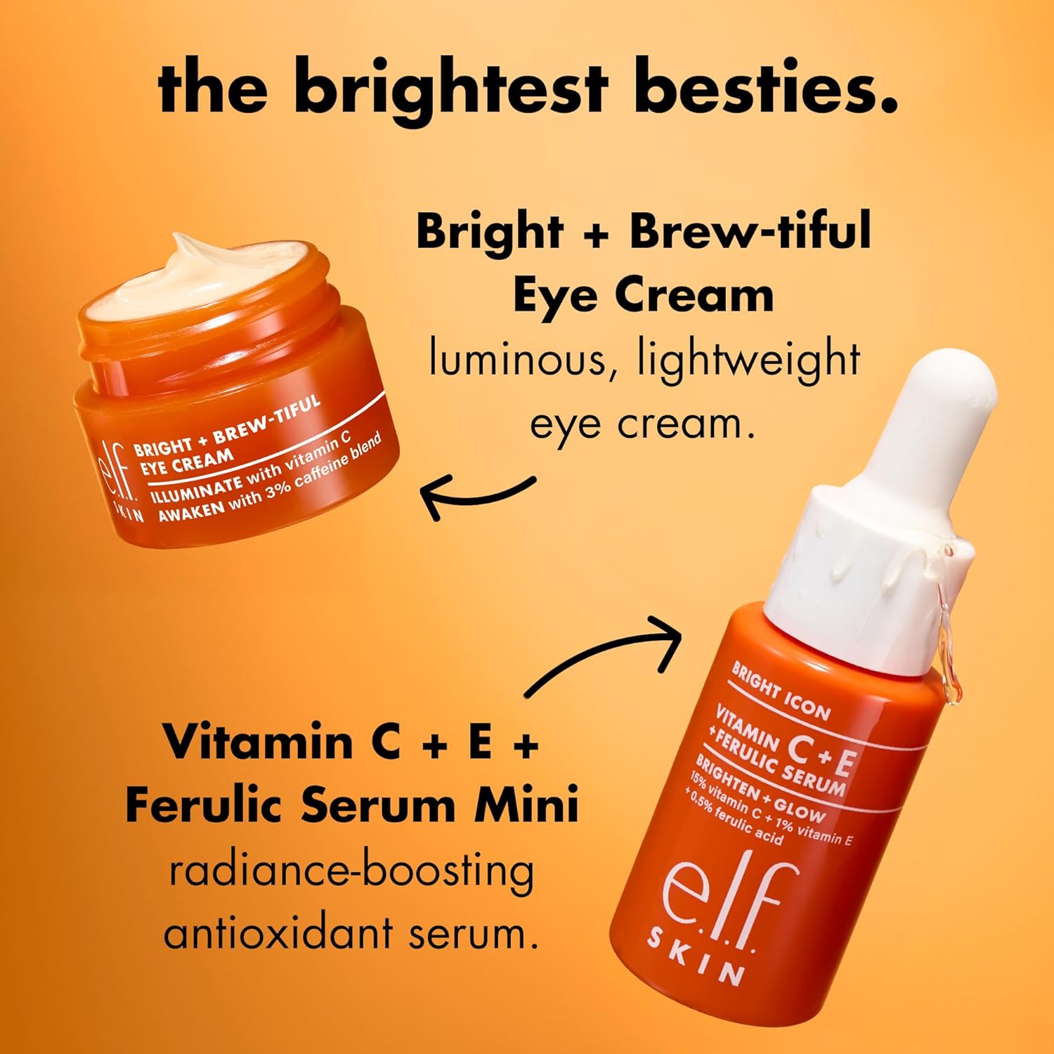 e.l.f. SKIN Brightest Besties Duo, Travel-Sized Skincare Set, Brightening Face Serum & Vitamin C Eye Cream, Boosts Radiance, Depuffs & Evens Skin Tone, Vegan & Cruelty-Free