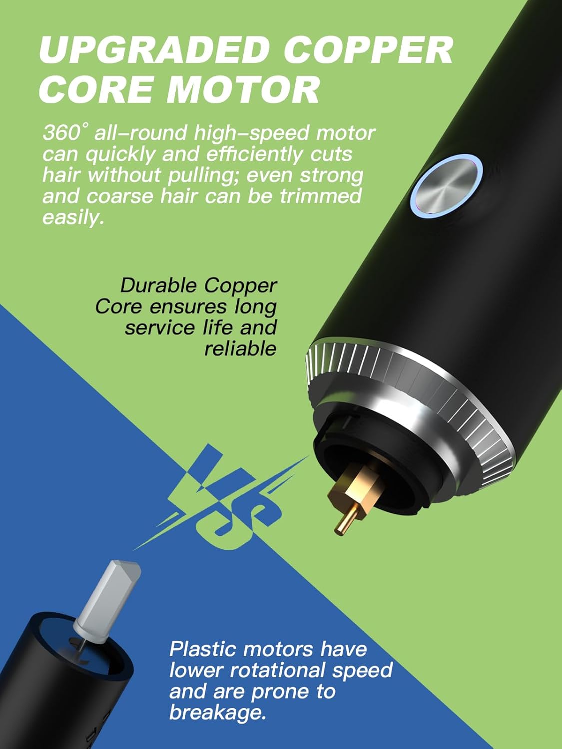 This nose hair trimmer with high quality stainless steel dual-edge spinning blades can quickly and accurately remove excess hair,safe and painless.