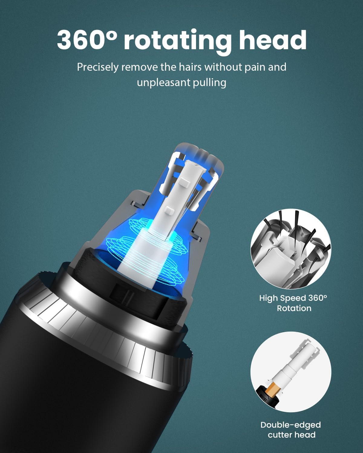 Rechargeable with Type-C & Large Capacity Battery: Ginity nose hair trimmer features a uniquely designed USB charging interface, prioritizing charging safety by guarding against risks such as overvoltage, overcharging, and short circuits. Its powerful fast-charging capability allows it to reach full charge in just 2 hours, eliminating the hassle of frequently replacing AA batteries and significantly enhancing user convenience