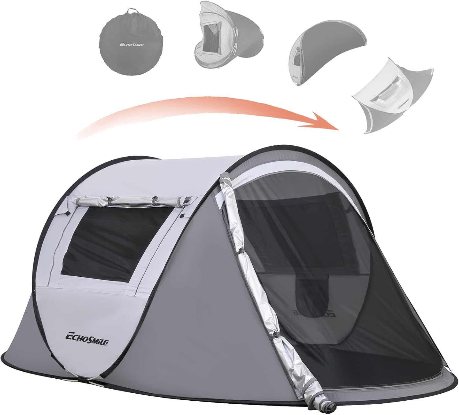 EchoSmile Instant Pop Up Camping Tent, 2/4/6 Person, Easy Setup Tent, Water Resistant Dome, Portable with Carry Bag