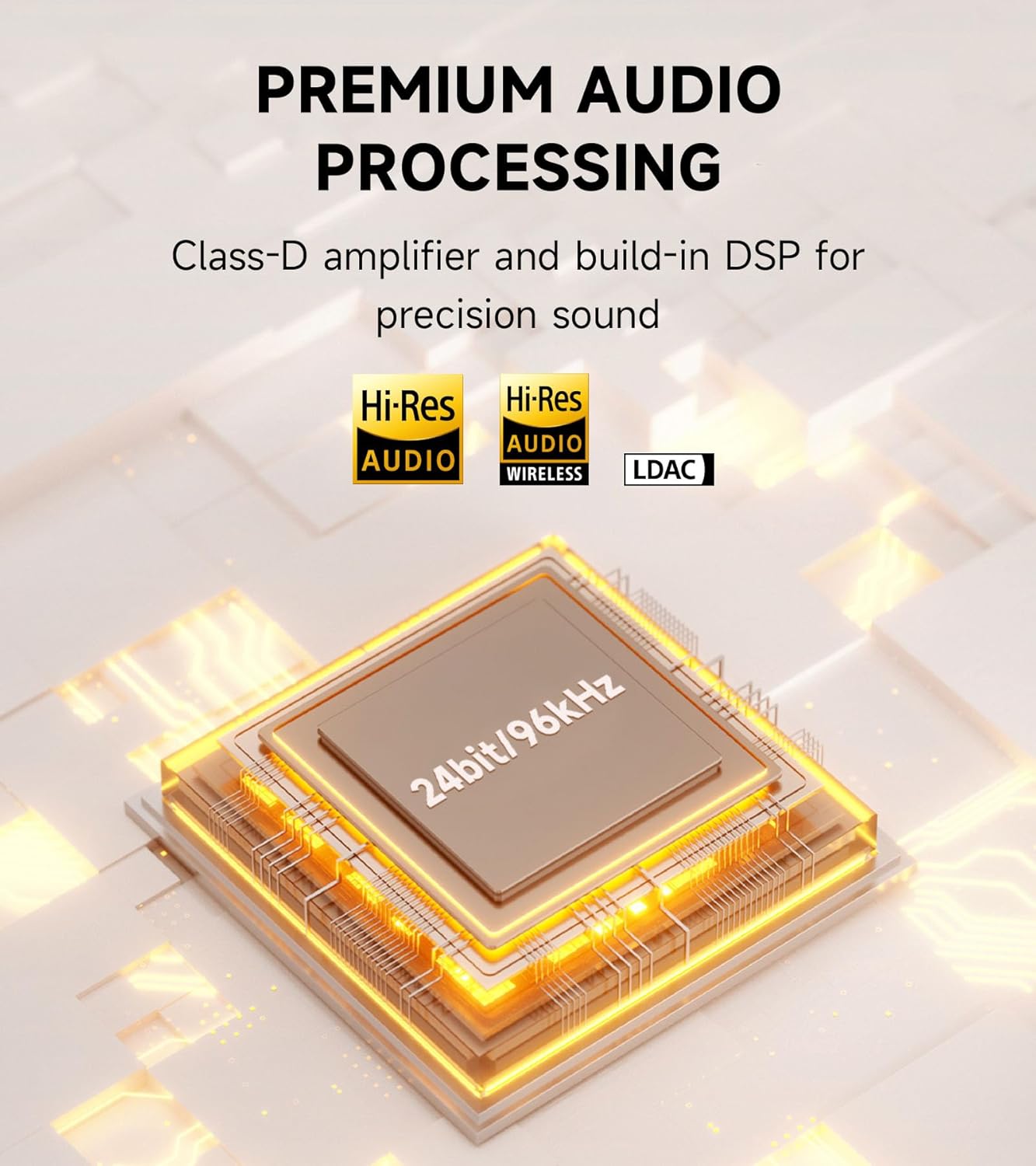 [High-Quality Audio Processing] Experience high-resolution audio with M series speakers, featuring full digital processing, Class-D amplification, and Hi-Res Audio certification for both wired and wireless transmission, along with precise two-way active crossover and dynamic range control provided by a built-in DSP
