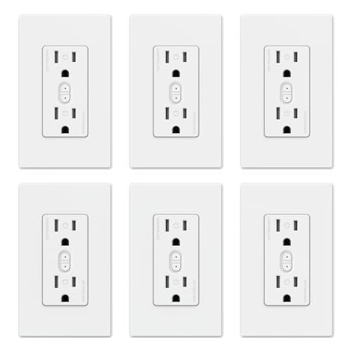 ELEGRP Smart Plug, Smart in-Wall Outlet Compatible with Alexa and Google Assistant, 2.4GHz Wi-Fi Smart Receptacle with Energy Monitoring, No Hub Required, UL Listed, White, 6 Pack