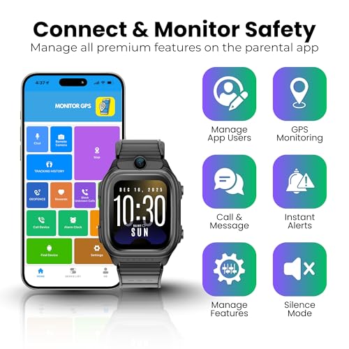 👨‍👩‍👧‍👦Parental Controls Monitor GPS App – Manage contacts, set usage limits, control app access, activate School Mode, and track your child’s location all from the Monitor GPS App. Total control, all in one smartwatch.