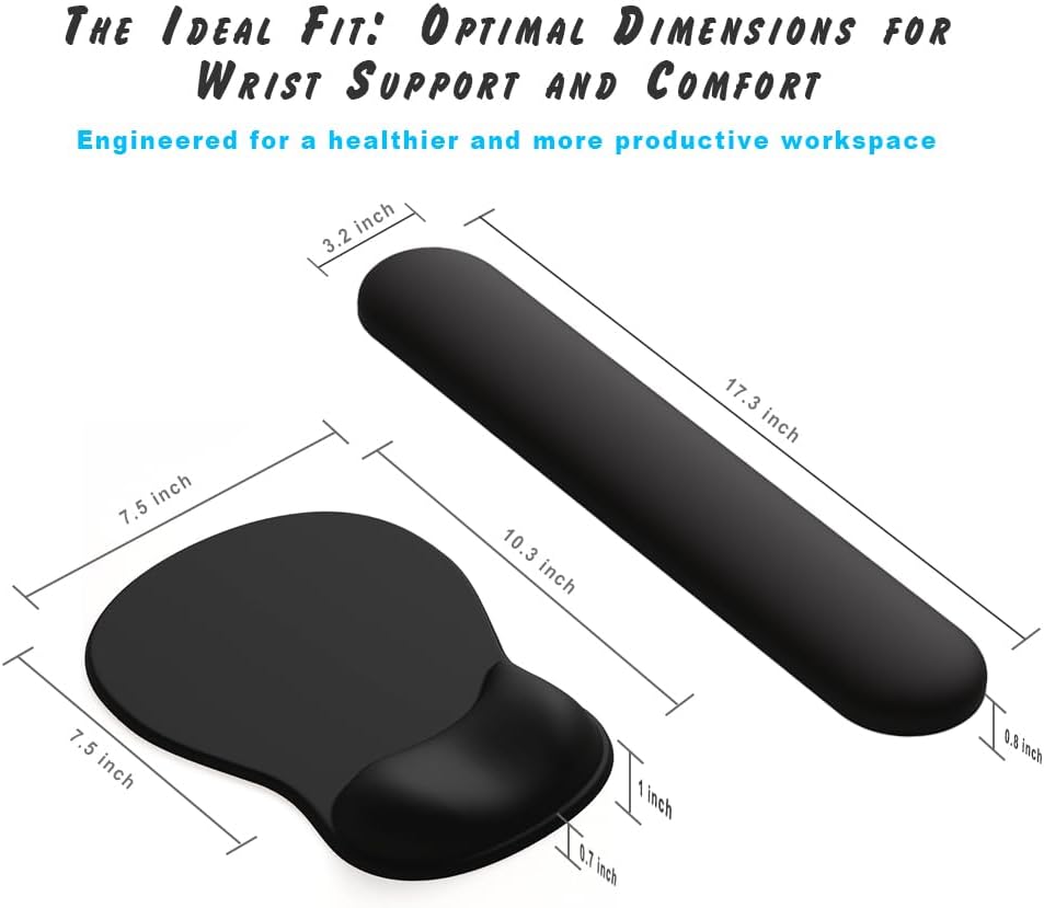 ✔ ♛ Enhanced Ergonomic Comfort ♛ ➤ Elevate your workstation comfort with our ErgoComfort Gel Wrist Rest Mouse Pad and Keyboard Wrist Rest Set. The mouse pad conforms to your wrist’s natural curve, while the added slow rebound memory foam keyboard wrist rest provides cushioned support for optimal ergonomics, reducing fatigue and the risk of repetitive strain injuries. The keyboard wrist rest features a skin-friendly milk silk fabric cover for a luxurious feel.