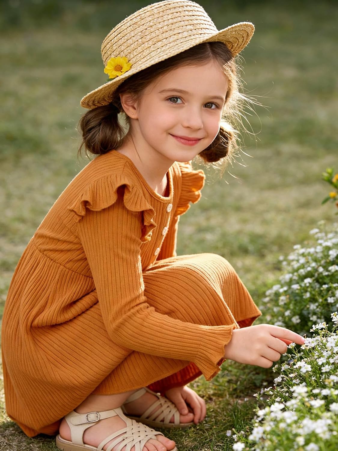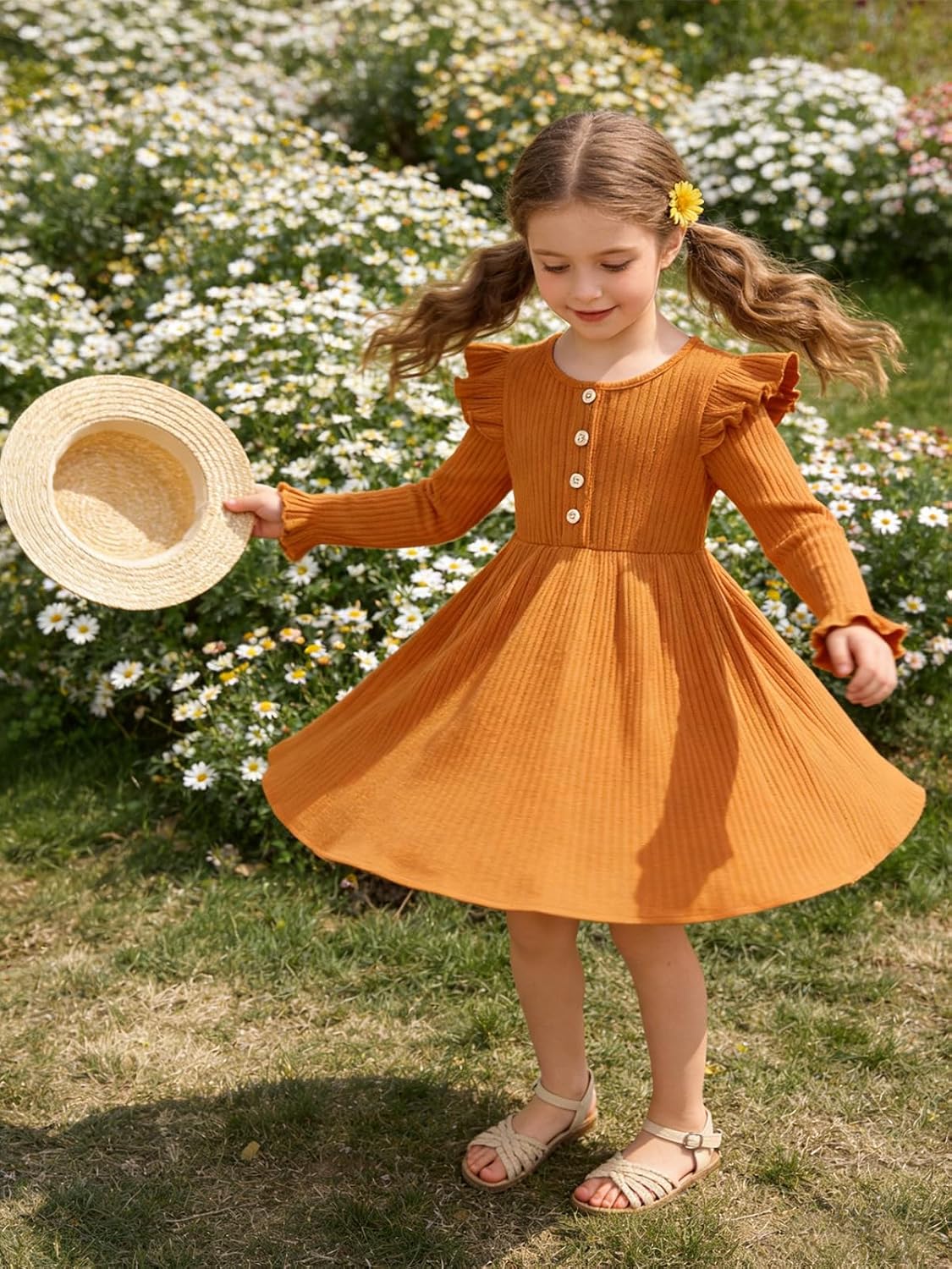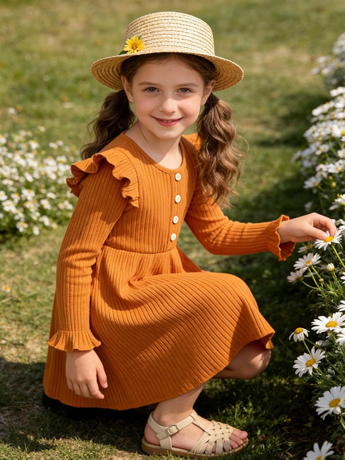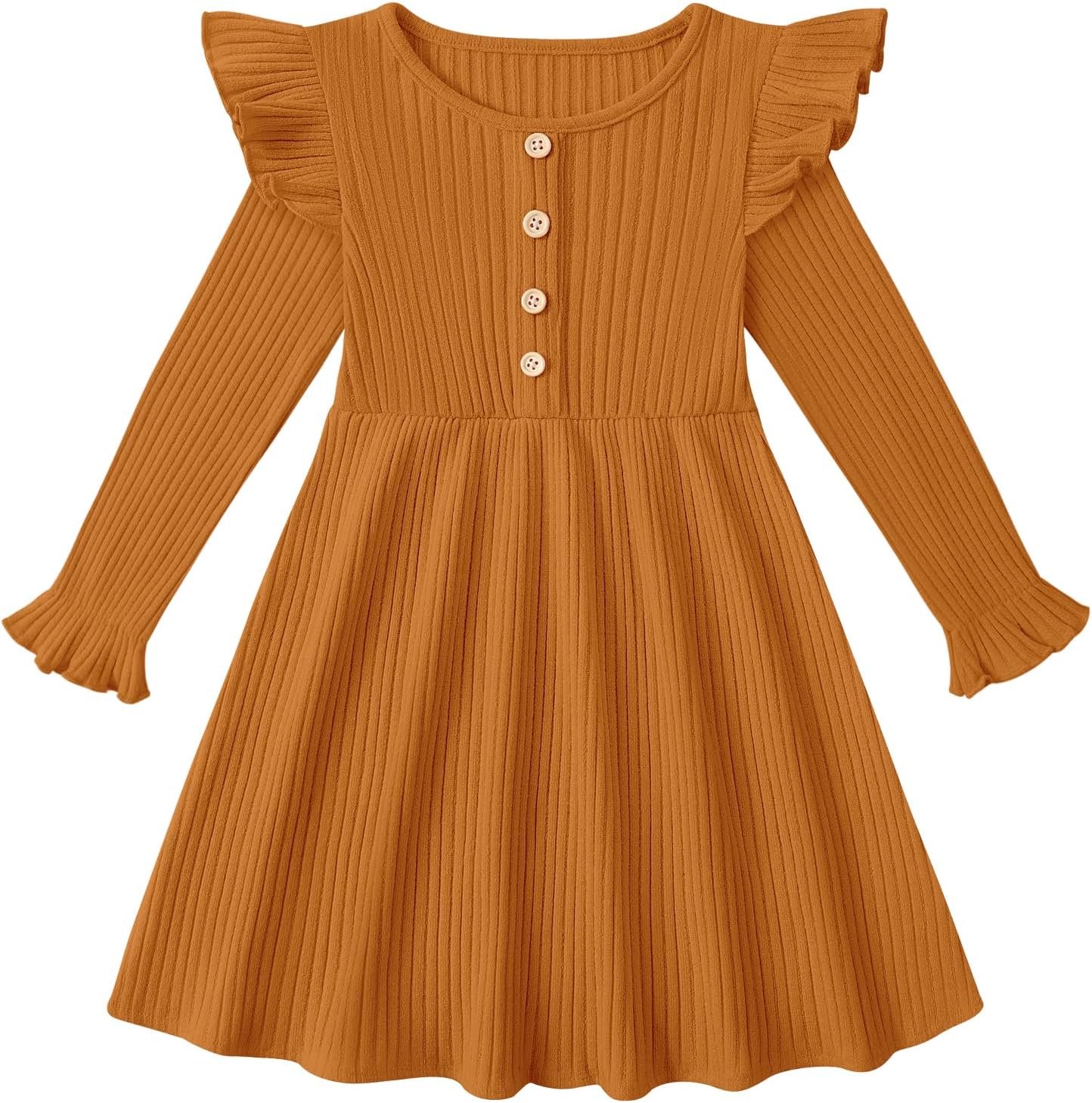 ESHOO Toddler Girl Dress Girls Sweater Dresses Ruffle Long Sleeve Ribbed Knit Casual Fall Dresses for Kids 2-7 Years