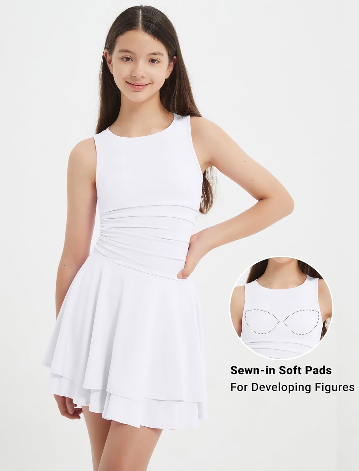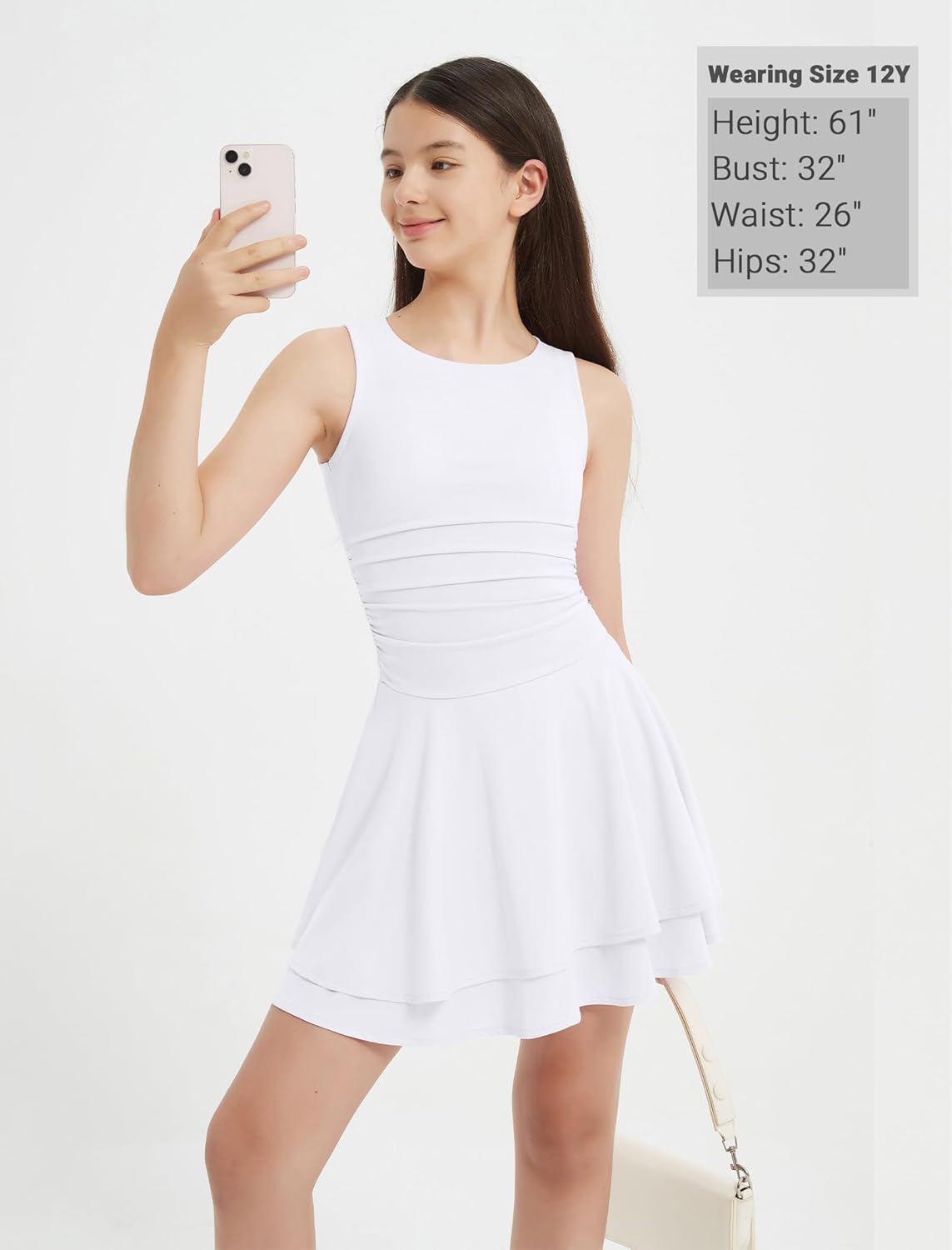 EXARUS Girls Dress Padded Long Sleeve/Sleeveless Teen Spring Valentine Flowy Layered Ruffle Ruched Mini Casual Dresses