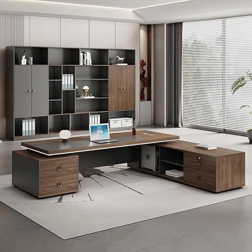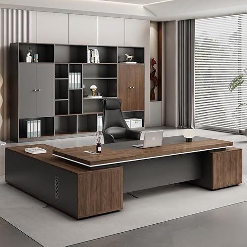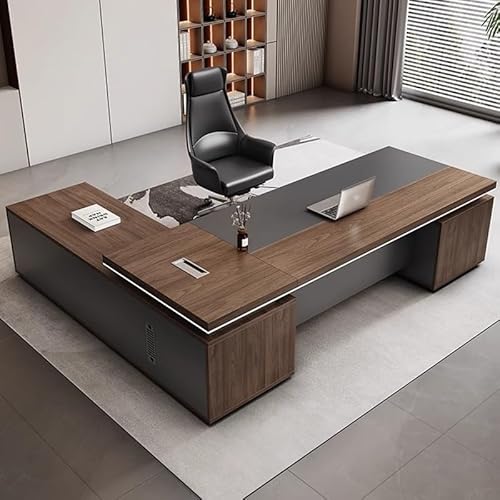 Executive Desks Luxury Executive Desks Boss Table Desk Modern L-Shape Office Desks with Drawers and Storage Shelves, Business Home Office Furniture Computer Desks for Business Office Home Computer Tab