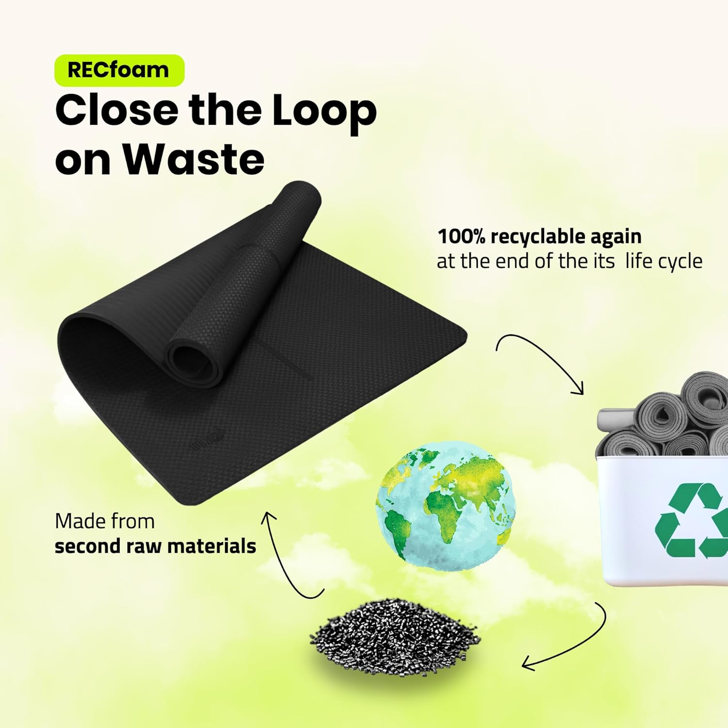 【Eco-friendly & Recyclable】Crafted from 100% recyclable premium Recfoam, our wide exercise mat is not only durable but also kind to the environment, ensuring no harm to our planet during its lifecycle