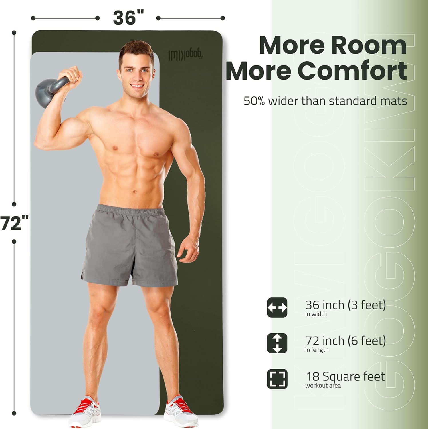 【Extra Space for Extra Comfort】 With a size of 72 x 36 inches, our extra large yoga mat is 50% wider than traditional mats, offering ample space for men and plus-size women to move freely and comfortably during their workout