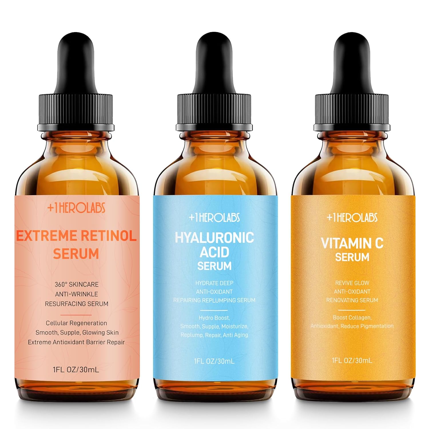 Facial Skin Care Set– Retinol Serum, Vitamin C & Hyaluronic Acid for Face – Anti Aging Face Serum Set for Women – Firm, Wrinkle Smoothing, Dark Spot Corrector, Brighten Dullness