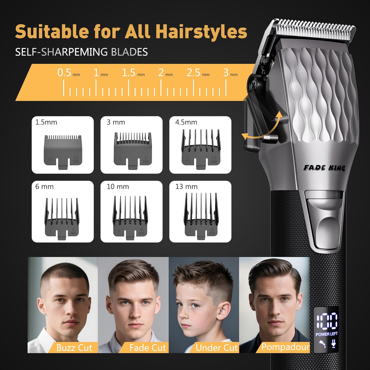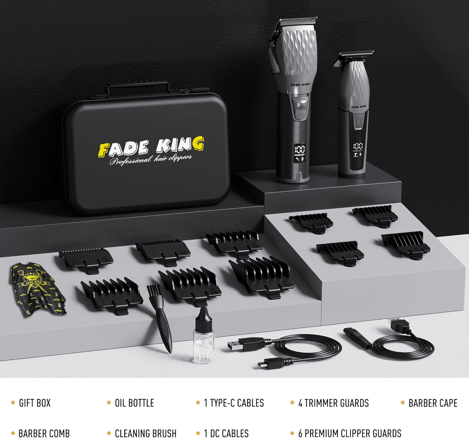FADEKING® Cordless Hair Clippers and Beard Trimmer for Men, Professional Barber Kit for Hair Cutting and Beard Styling, Premium Grooming Gift for Men