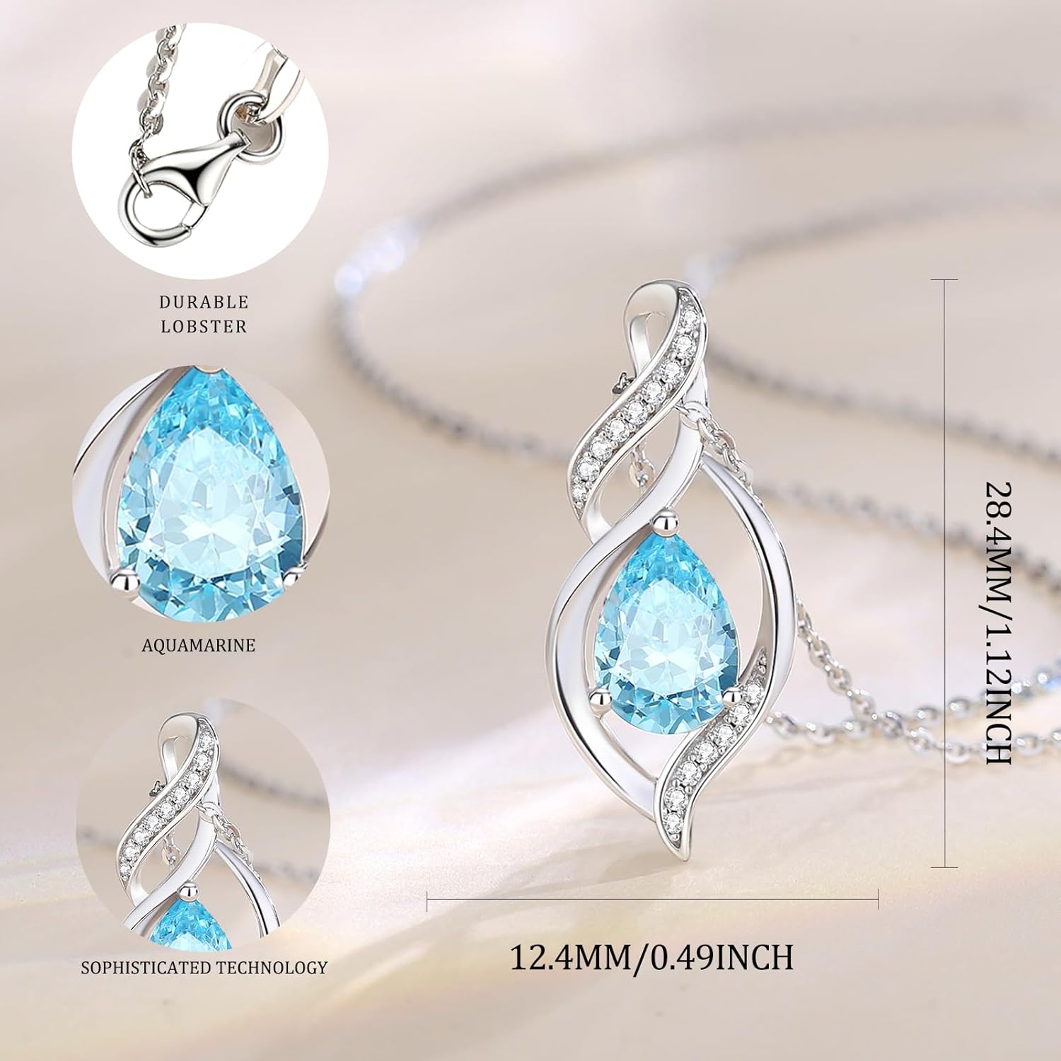 FANCIME Birthstone Necklace for Women Teardrop Necklace S925 Sterling Silver Infinity Love Birthday Gifts for Mom Women Girls, 16″+2″ Inches