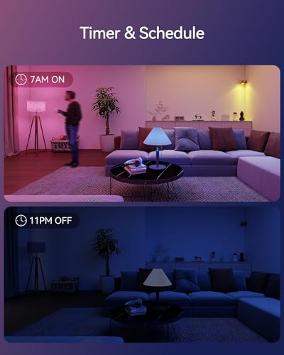 【Timer & Schedule】Set schedules, timers to automate your smart bulbs. Control them individually or as a group for a personalized experience. Turn lights on/off, change colors, or adjust brightness anytime, from anywhere