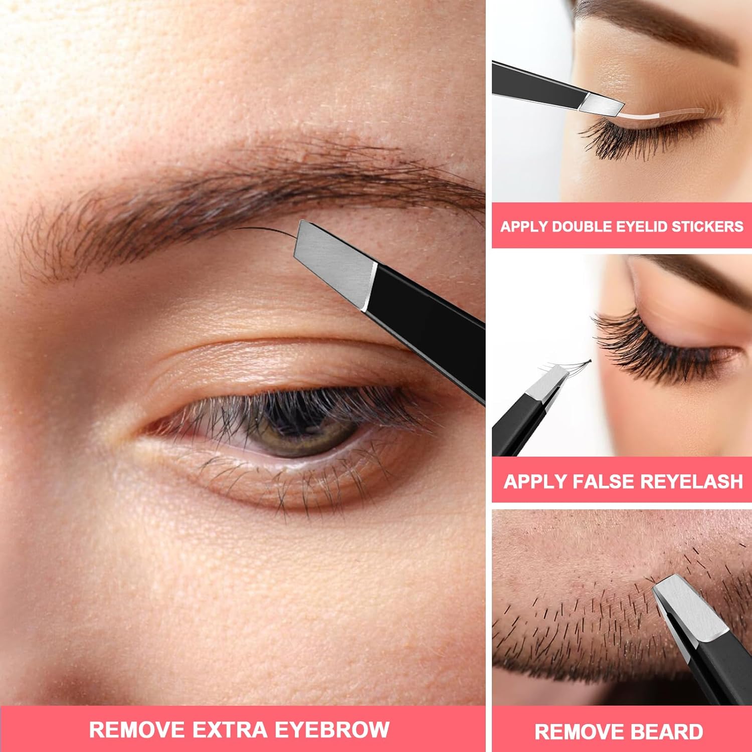 Eyebrow Tweezers Set: The aligned slant tip eyebrow tweezers is used for accurate tweezing and remove, ideal for most of eyebrow, hair, beard. And the flat tip tweezers is for eyebrow defining, false eyelash, double eyelid stickers. The tweezers are premium made that can be tightly closed without too much pressure for precise and easily removal. You can remove excrescent eyebrow easily and quickly without hurting your skin.