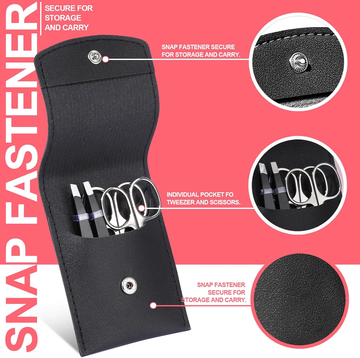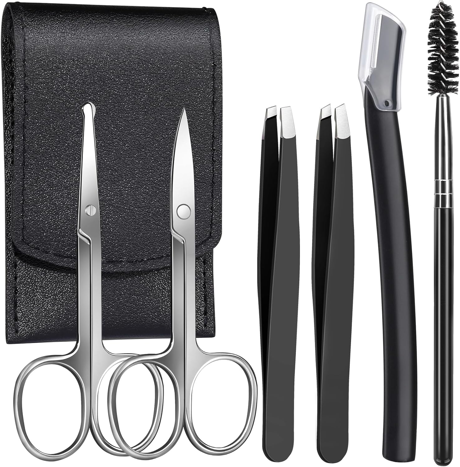 Professional Eyebrow Grooming Kit: The eyebrow kit comes with 1pcs small eyebrow scissors curved tip, 1pcs eyebrow scissors rounded tip silver. 1pcs eyebrow tweezers slant tip, 1pcs eyebrow tweezers flat tip. 1pcs eyebrow razor and 1pcs eyebrow brush. Total 6pcs eyebrow trimming tools with a leather travel case portable and orderly. One kit includes 6pcs practical and essential accessories for eyebrow.