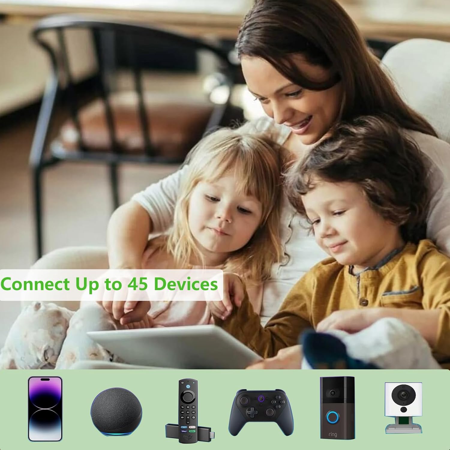 Provides stable Wi-Fi for your smart home devices like security cameras, video doorbells, smart bulbs and garage openers.