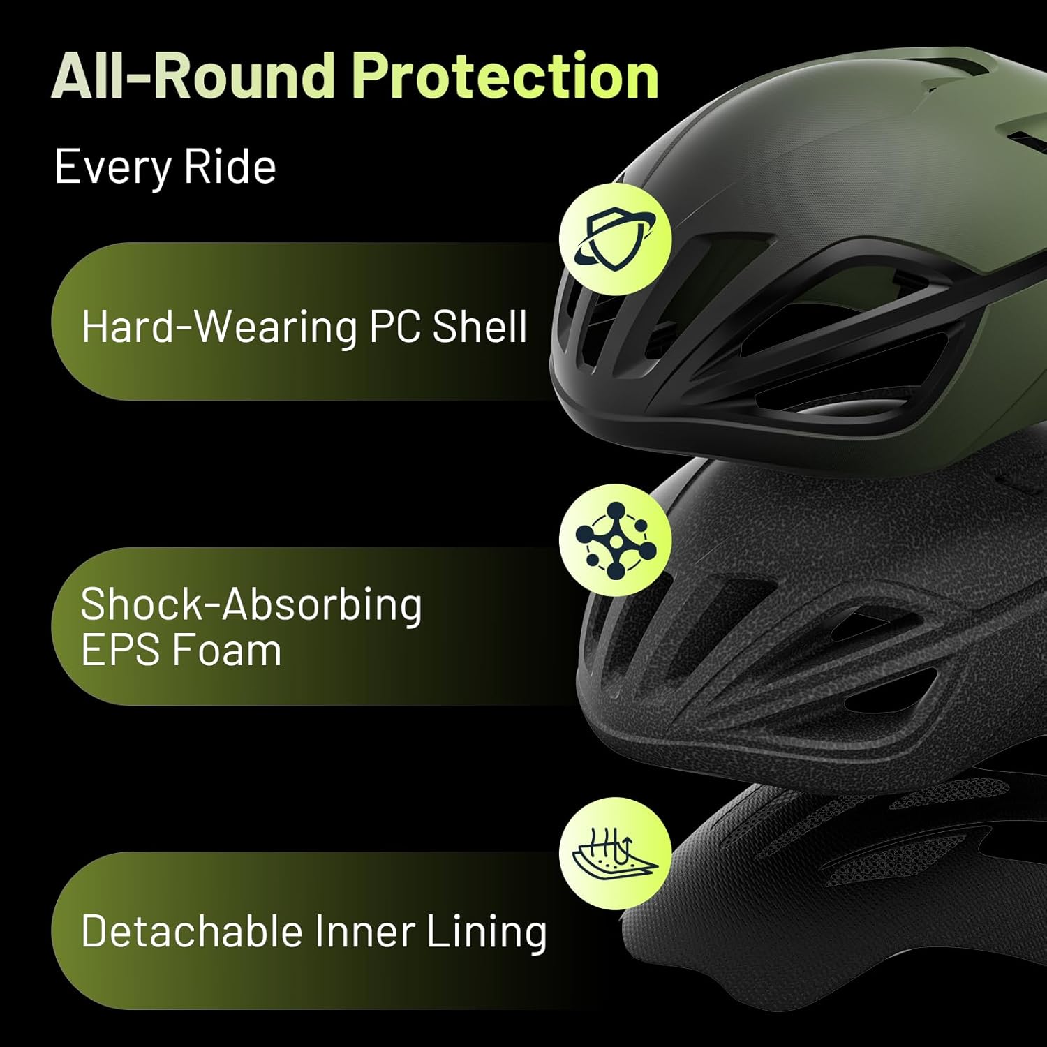 Reliable Impact Protection: PC shell combined with shock-absorbing EPS foam helps reduce impact force and protect your head during everyday riding. The reinforced lower edge helps resist wear for long-term use.