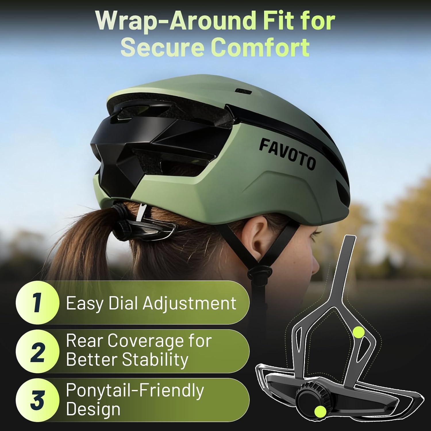 Favoto Adult Bike Helmet for Men & Women, Lightweight Cycling Helmet with Adjustable Fit, Sleek Streamlined Design, Road Commuter & Mountain Riding