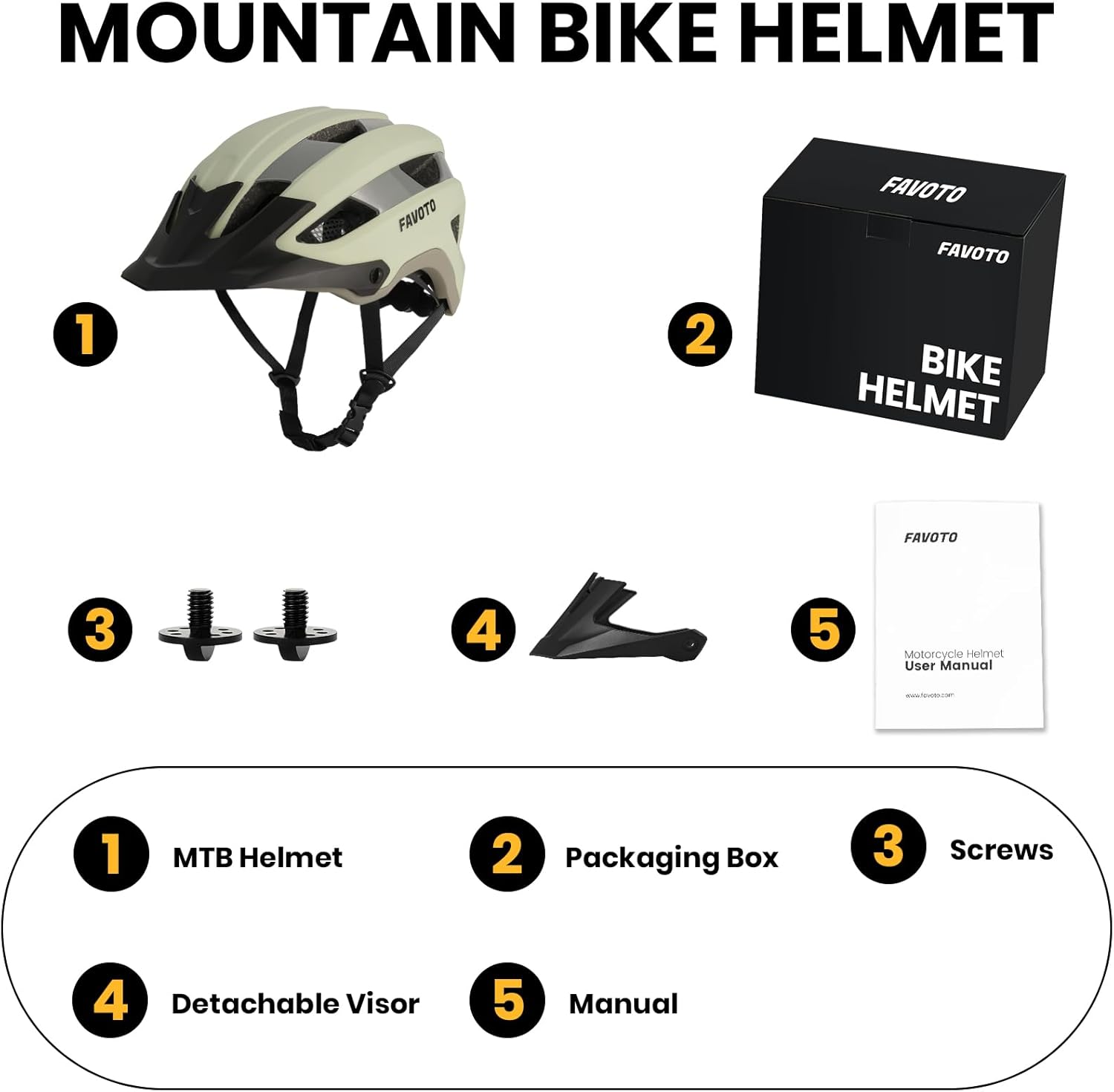 Favoto Mountain Bike Helmet Adult – Lightweight CPSC Certified with Reinforced Spine and Detachable Visor, MTB Road Bicycle Helmet