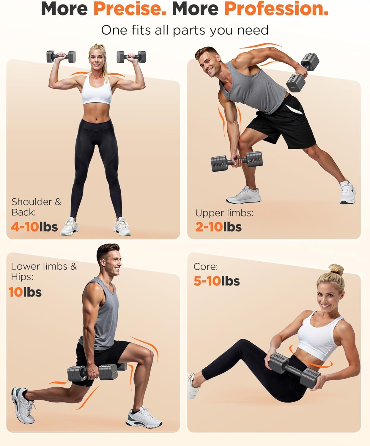 ‎① 5-in-1 ② More various size: 10/8/6/4/2 lbs ③ Full-adjustable ④ Dual-Lock Stable ⑤Space-saving ⑥ Colorful & Fashion