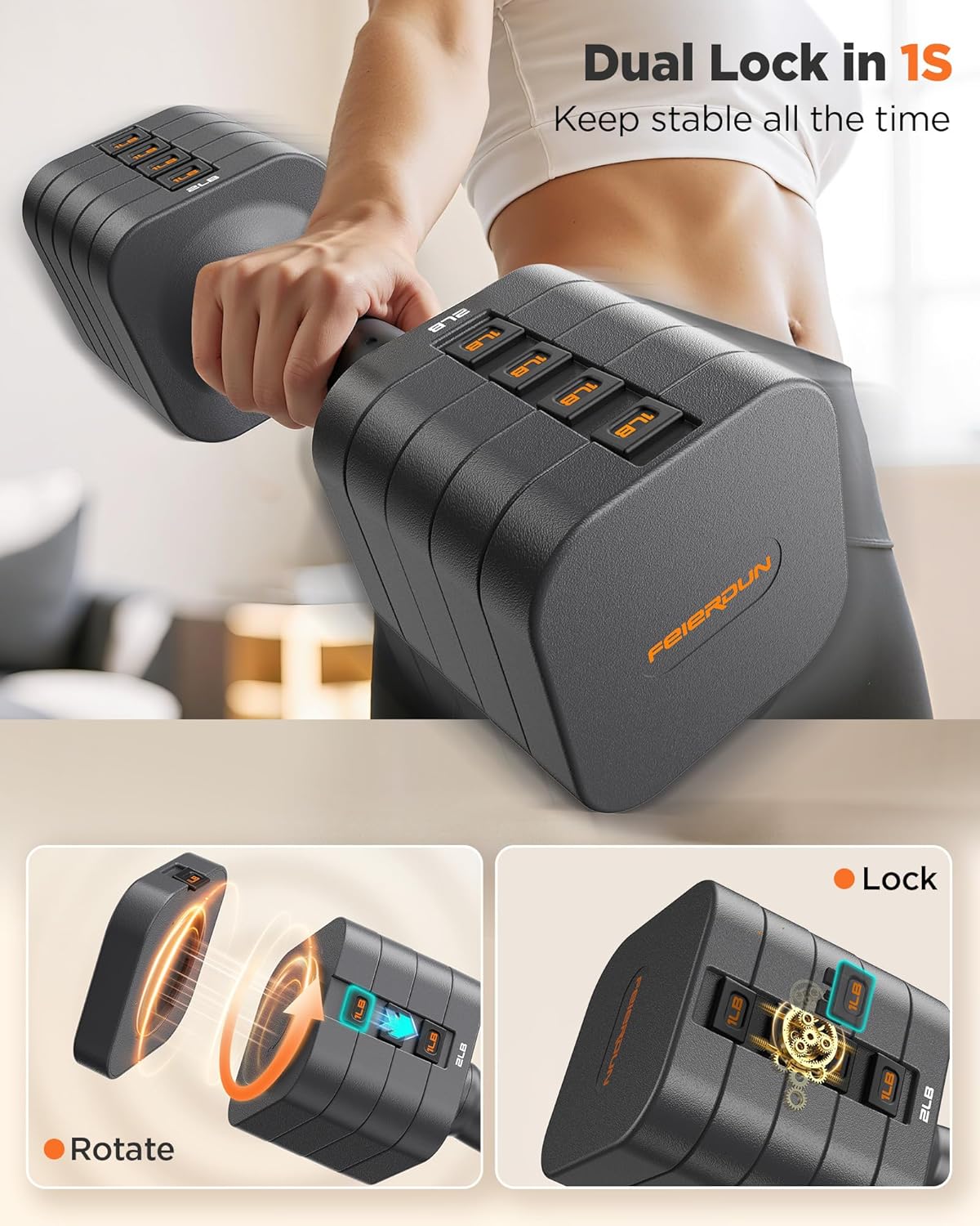 Specification: FEIERDUN 5-in-1 Adjustable Dumbbell Set of 2, 12LBS/20LBS Hand Weights for Women, 1s-Adjust Dual-Stable Dumbbell Set for Women Home Gym & Outdoor