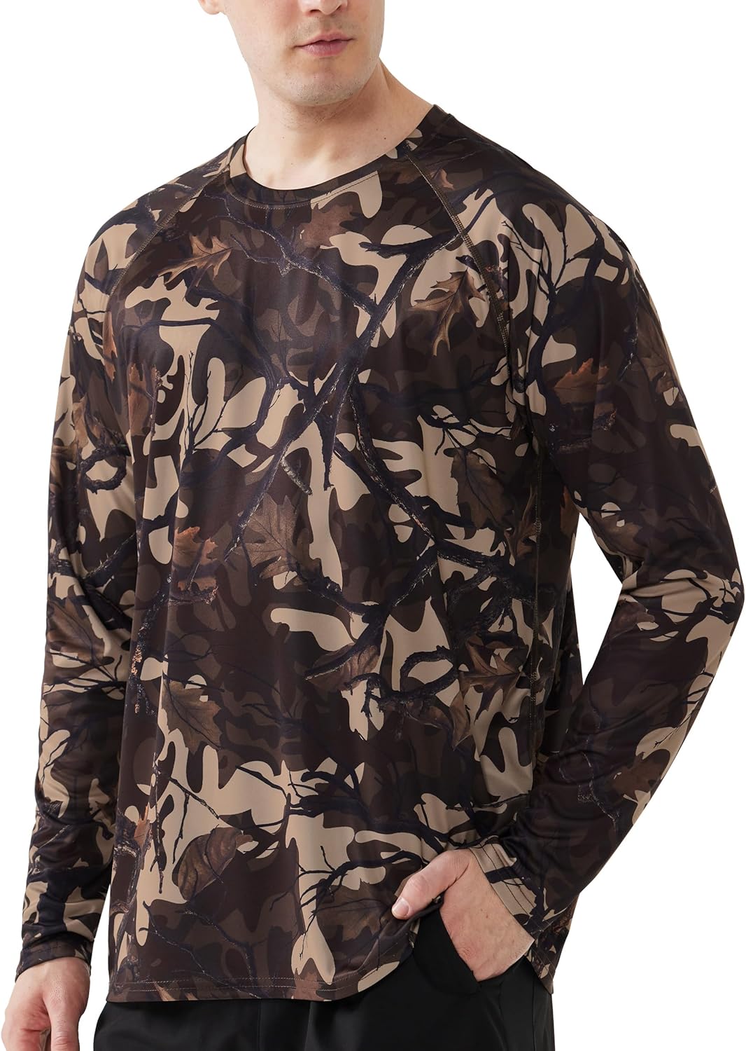 FISHEAL Men’s Camo Hunting Shirts – Long Sleeve Performance Camouflage Fishing Shirt Lightweight Quick Dry UPF 50+
