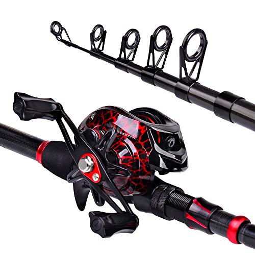 Fishing Rod and Reel Combo, 6.9ft Telescopic Spincast Rod with Right Handed Baitcasting Reel Combos, Sea Saltwater Freshwater Ice Bass Fishing Tackle Set Fishing Rods Kit